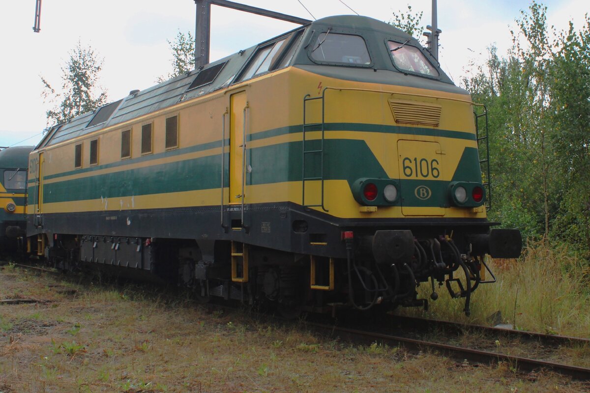 Ex=-SNCB 6106 steht am 17 Augustus 2024 etwas hintergestellt ins retrotrain, das PFT-TSP Museum in Saint-Ghislain.