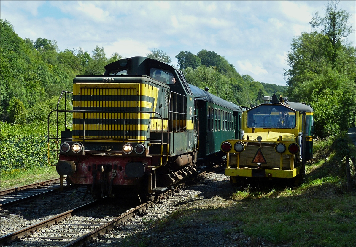 . Diesellok 7784 von Lineas, im Bahnhofsbereich von Dorinne-Durnal, auf der Museumsstrecke des PFT, aufgenommen am 14.08.2017.