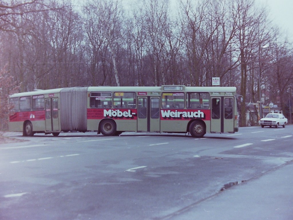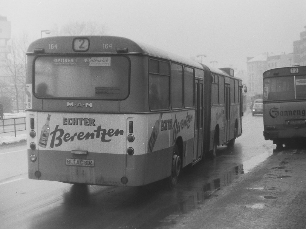 Wagen 133, OL-AC 873, EZ: 1973. Ursprünglich hatte ich geplant hier von jedem Bus nur ein Foto zu veröffentlichen. Da mich nun doch die eine oder andere Mail erreicht hat und das Interesse wohl doch größer ist, als ich zunächst erwartet hatte, werde ich bevor ich mit dem Jahrgang 1983 fortfahre hier zunächst die ausgelassenen Bilder der Busse von 1970 bis 1981 nachholen. Hier steht Wagen 133 am 11.04.83 mit der neuen Version der ÖBS-Werbung - wieder mal - auf der Reserveposition am Stadtmuseum West.