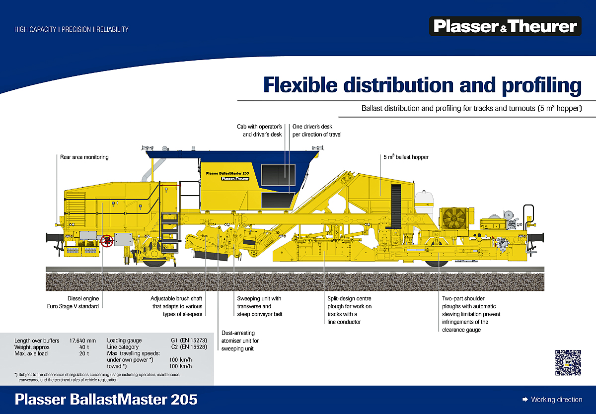TECHNISCHE DATEN der Plasser BallastMaster 205: