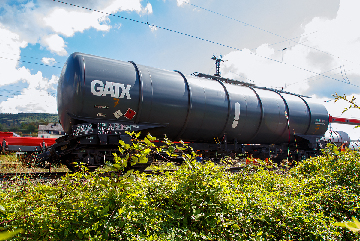Der vierachsige Kranauslegerschutzwagen für KRC 1200 - 785 002 - UIC-Nr. 99 80 9370 074-3 D-DB der DB Netz AG zum Eisenbahnkran KRC 1200 (732 002) steht am 02.09.2020 in Niederlahnstein. Nach der Entgleisung eines Kesselwagenzuges am 30.08.2020 waren hier die Aufräumarbeiten im vollen Gange.