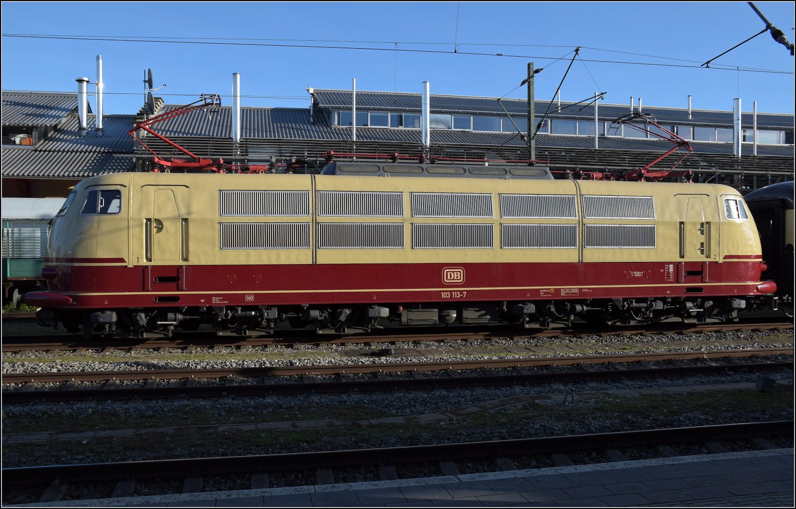Ae 4/7 10997 auf Besuch in Konstanz. Da der Fahrdraht am Bahnsteig zu Ende war, fuhren die Loks mangels Rangiermöglichkeit um Konstanz herum. Heute kein Thema mehr. Konstanz, Juli 2008.