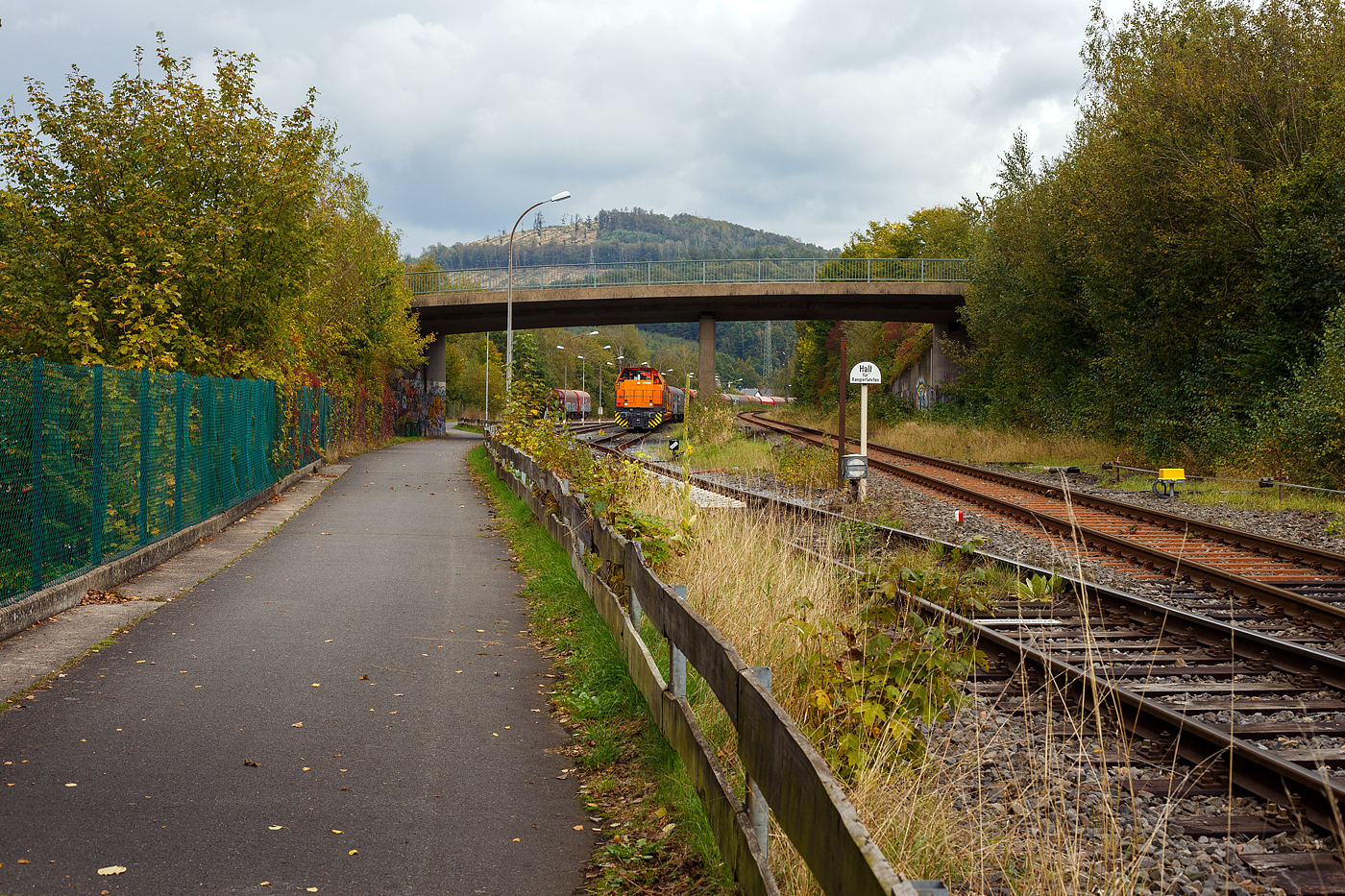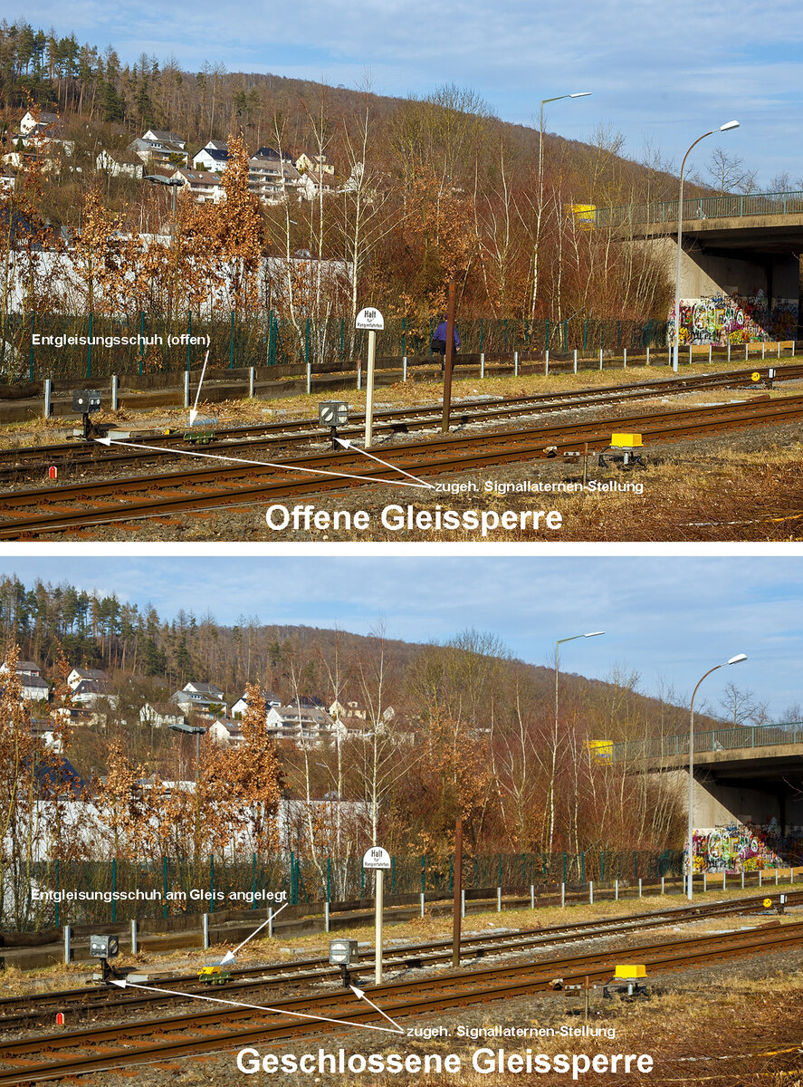 Die Weichen 25 und 26 beim Bahnhof Herdorf sind beide am 12 Oktober 2025 eingebaut, müssen noch eingeschottert werden. Hier sieht man im Bauzustand die provisorisch gelaschten Schienenstöße, zwischen 2 Segmenten der Weichen 26. Die einzelnen Schienenstöße bestehen jeweils aus 2 formschlüssigen Laschen und einer Robel ROCLAMP 68.05 „lang“ Klemme (langer Notlaschenverbinder). Es ist eine formschlüssige und sicheren Verbindung, die je nach Infrastrukturbetreiber bis zu 200 km/h zugelassen sind.