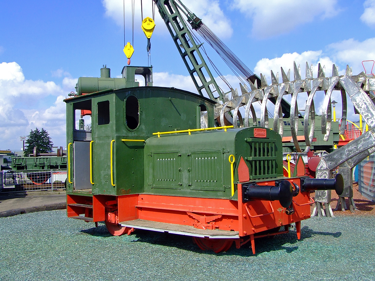 Die Gmeinder 5044 eine Gmeinder Typ 400/440 PS eine ehemalige Diesel-Lokomotive der Bundeswehr (Versorgungsnummer 2210-12-120-5653), am 05.07.2015 ausgestellt beim Erlebnisbahnhof Westerwald der Westerwälder Eisenbahnfreunde 44 508 e. V. hier war Museumstag.