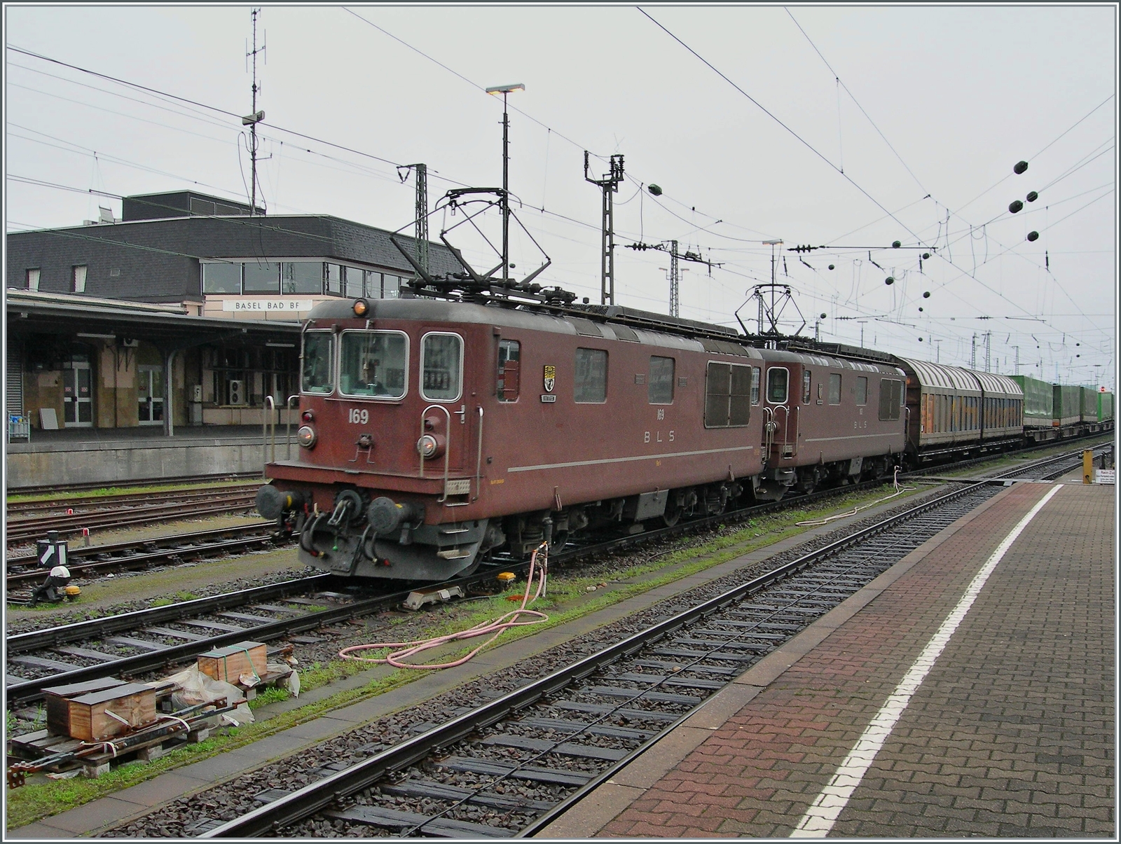 Die DB 110 288-8 mit ihrem Schnellzug nach Dortmund ist nur vordergründig das Motiv dieses Bildes. Der Grund, weshalb ich dieses qualitativ etwas schlechte Bild zeige ist vielmehr die Bahnhofshalle von Basel Bad Bf., bzw. was zu Zeitpunkt der Aufnahme davon noch übrig war.