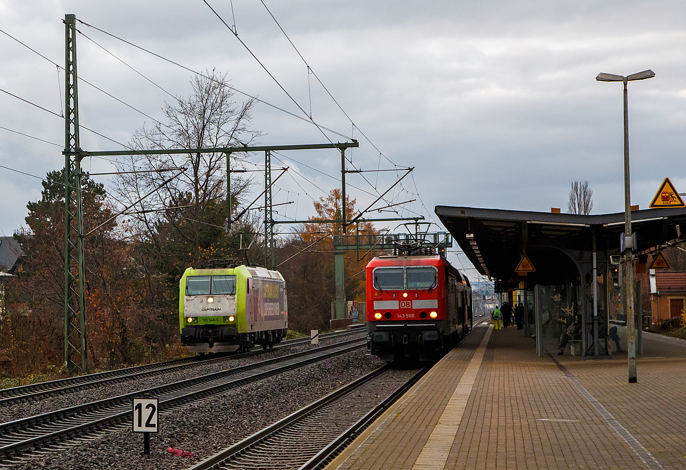 Steuerwagen voraus rauscht ein IC der DB Fernverkehr AG am 07.12.2022 Radebeul Ost in Richtung Dresden, Schublok war die 101 101-4. Die Bahnstrecke Leipzig–Dresden (KBS 500), eine zweigleisige elektrifizierte Hauptbahn für bis zu 200 km/h, verläuft hier etwas abgetrennt vom Bahnhof bzw. von der Bahnstrecke Pirna–Coswig (KBS 241.1).