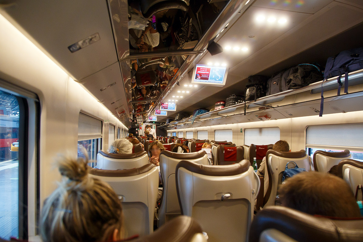 Fabrikschild (vom Umbau) der Trenitalia E.401.031 (ex FS E.402.03) am im Bahnhof Milano Centrale (Mailand Hbf).
