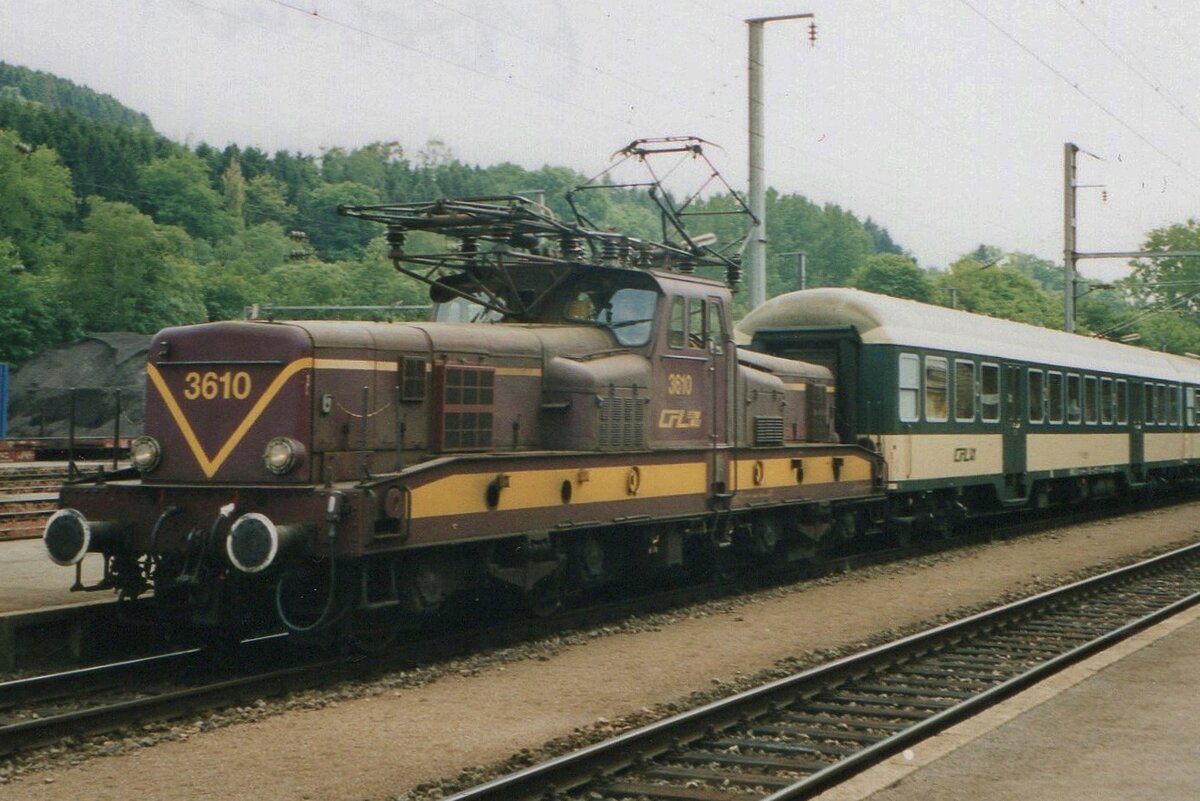 Ein noch nie veröffentlichtes, leicht verrauschtes Bild der BB 3608. Am 19.09.2004 fand in Pétange das Bahnfest "Péiteng am Damp" statt und abends wurde eifrig im Bahnhod rangiert. Die Dampflok N° 5 der Museumsbahn "Train 1900" sammelt ihre Wagen ein, während die BB 3608 allein durch den Bahnhof fährt. Diese Lok entging zum Glück dem Schicksal der Verschrottung, sie wird als Museumslok der Nachwelt erhalten bleiben und ihre Restaurierung steht kurz vor der Vollendung. (Hans)