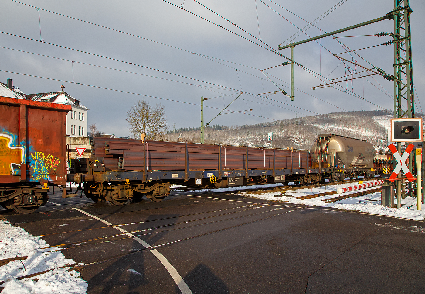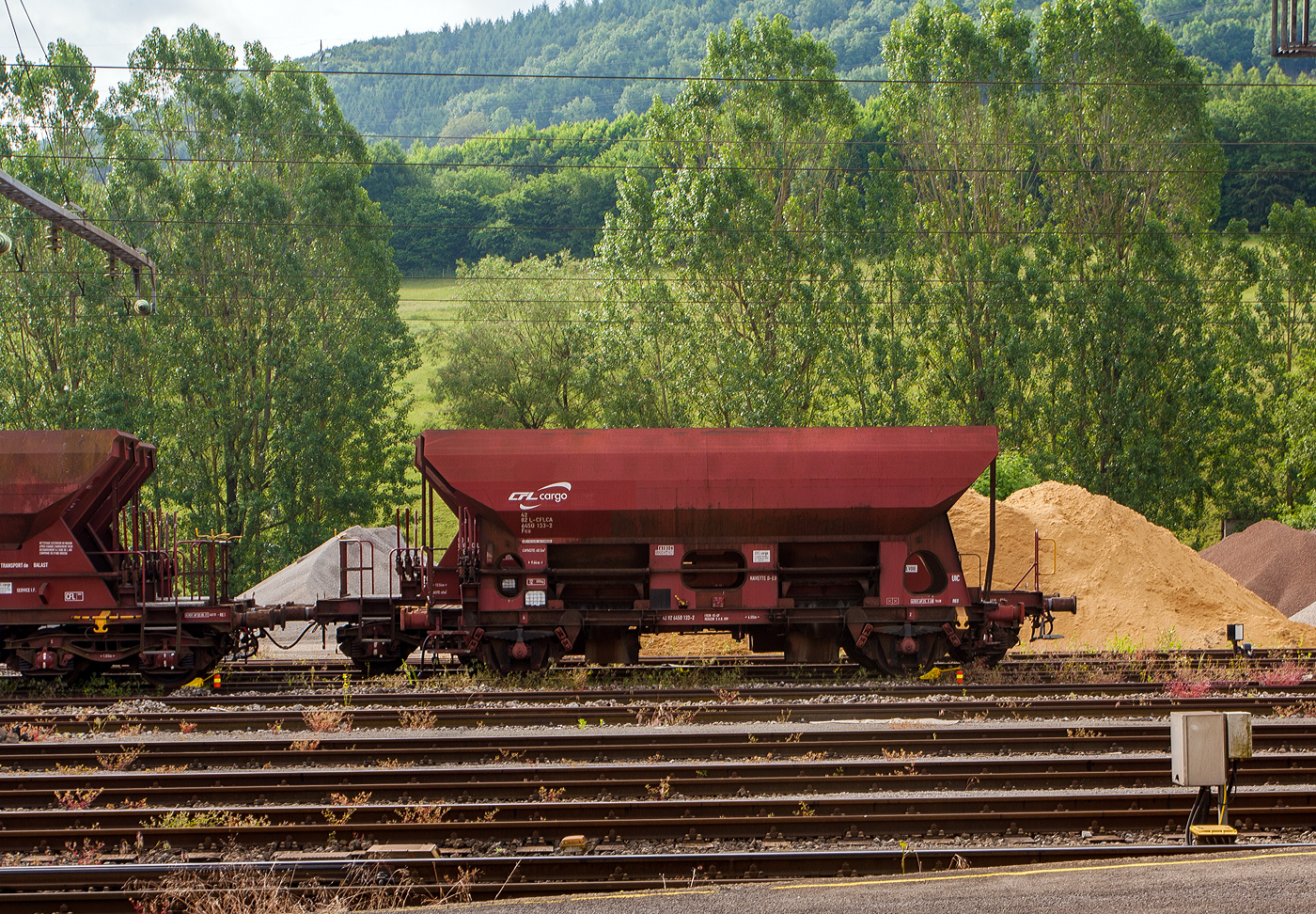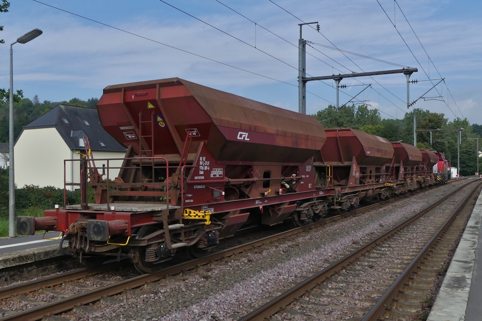 . Der CFL Cargo Schotter- und Kieswagen vom Typ Uads 80 82 RIVL-CFLCA 9786 005-4 war am 06.11.2014 im Bahnhof von Ettelbrück abgestellt. (Hans)