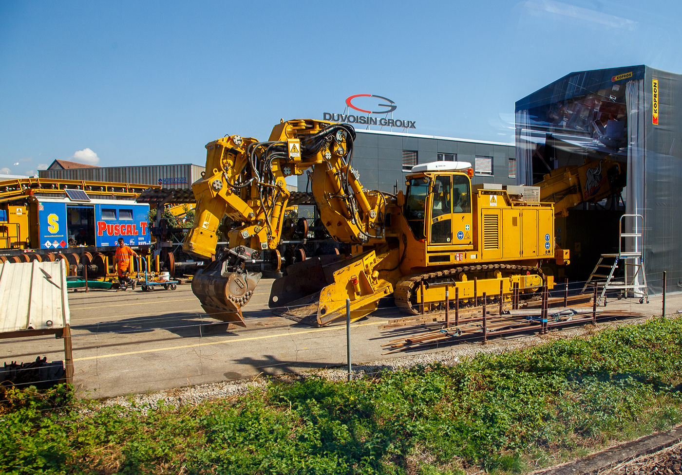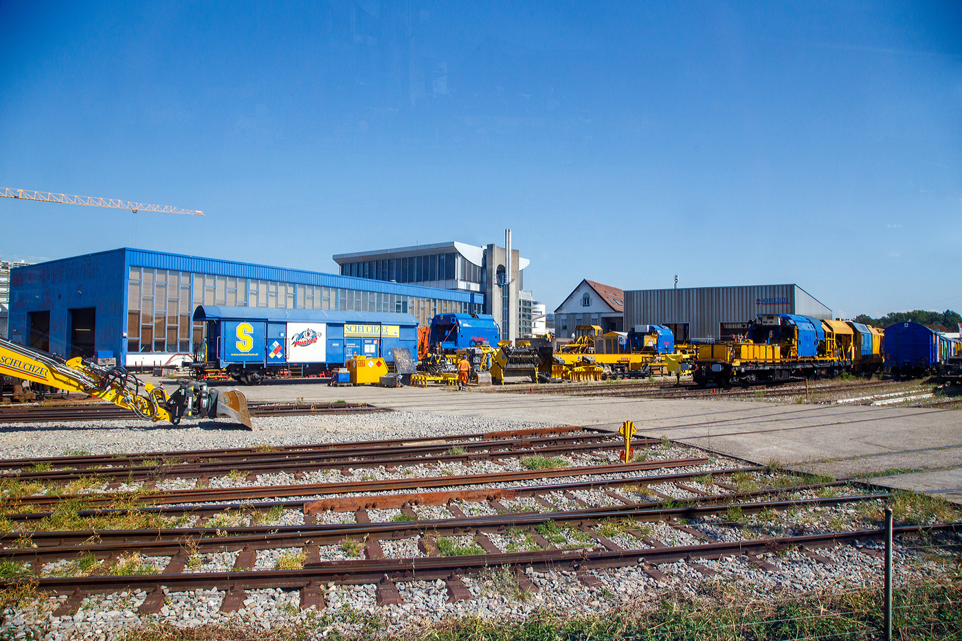 Der SILAD 1 der SCHEUCHZER S.A. abgestellt am 28.05.2012 im Bahnhof Spiez. Links der Vs 40 85 95 07 530-5 CH-SBB mit dem Portalkran und rechts der Vs 40 85 95 07 531-3 CH-SBB.