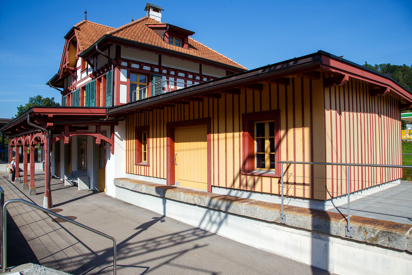 Der Güterschuppen von Bex, am 28 Mai 2012, früher gingen die Gleise der BVB hinter der Rampe bis an den Güterschuppen zur Übergabe an die SBB.