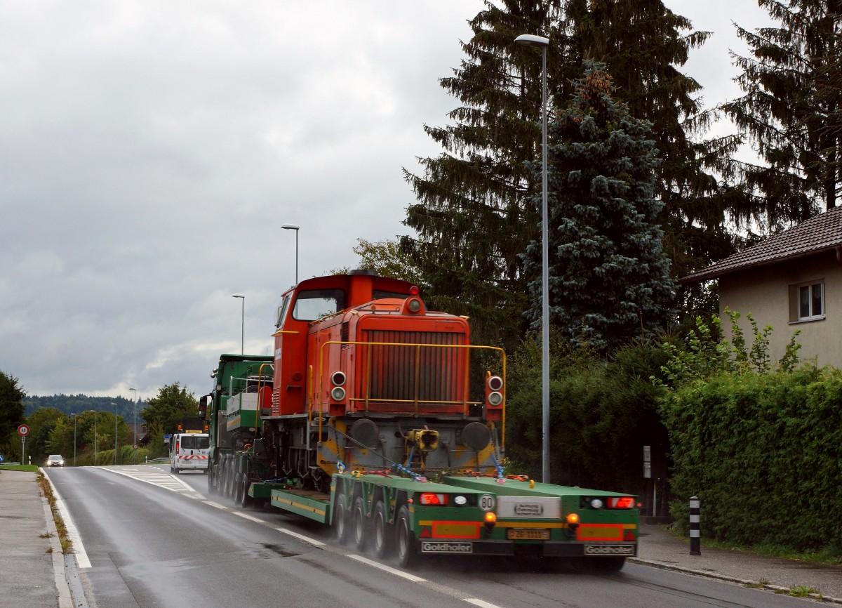 KEBAG AG/SBB: Mit der betriebseigenen ferngesteuerten Schöma-Rangierlok wurden am 5. Mai 2015 die Kehrichtwagen für den Umlad der Container auf die Lastwagen bereitgestellt.