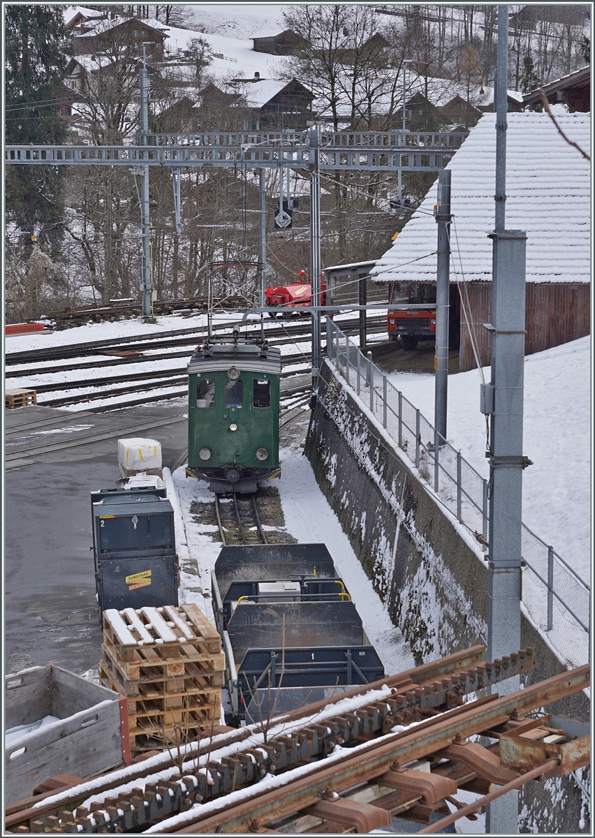 Der BDhe 4/4 – 110 der WAB – Wengernalpbahn wartet am 02.10.2011 in Lauterbrunnen auf die Fahrgäste.