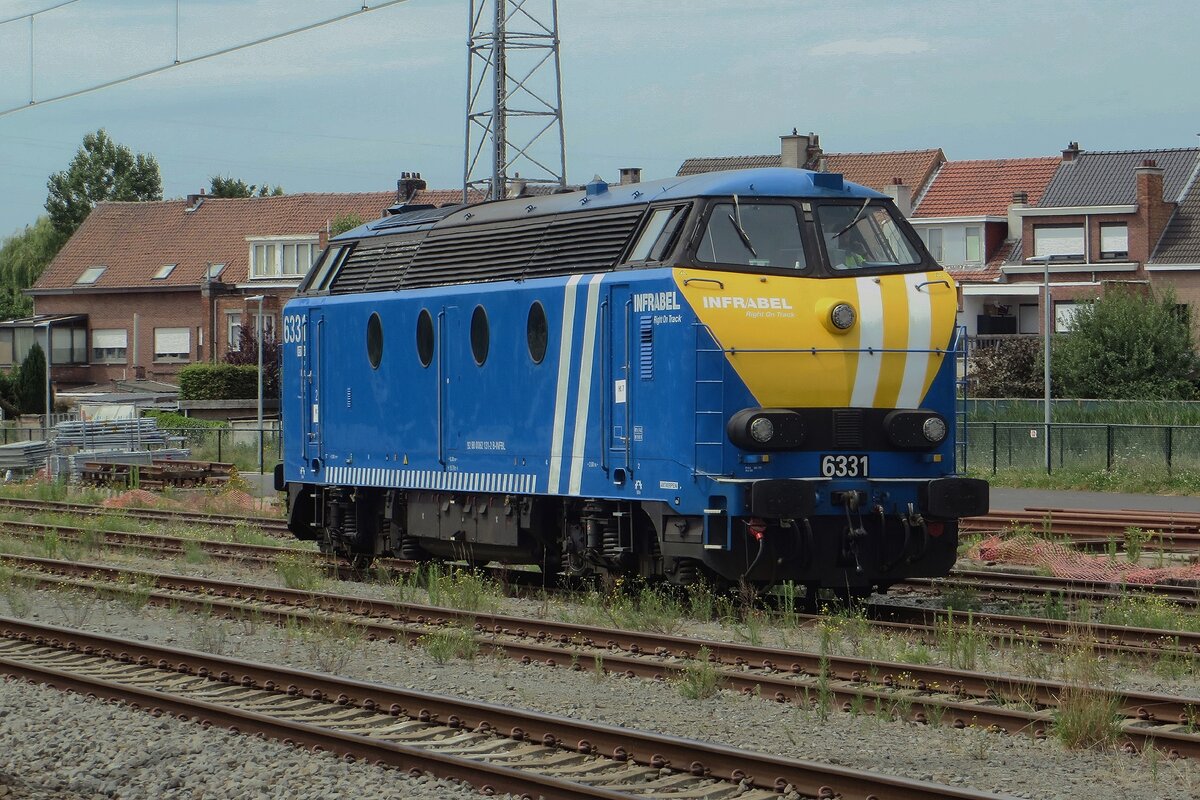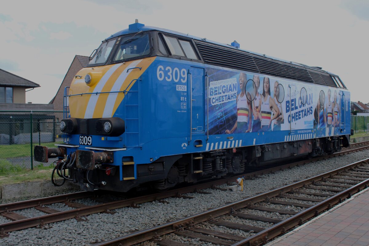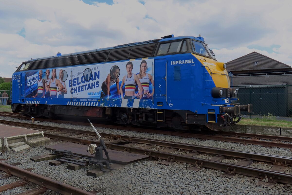 Quasi-retro Infrabel 6305/212.205 steht am Offener Tur Tag 17 Augustus 2024 ins Retrotrain-Museum in Saint-Ghislain.