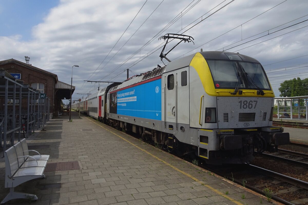 NMBS 1924 treft am 22 Mai 2014 mit ein IC nach Oostende in Brugge Centraal ein.
