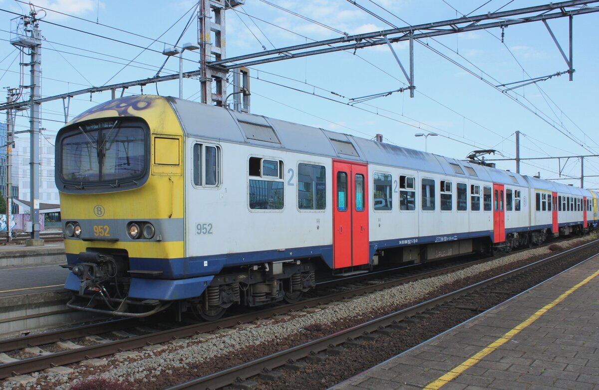 . Am 23.06.2010 gab es saubere Züge zu bewundern im Bahnhof Antwerpen Centraal. Rechts war die Taucherbrille AM86 939 abgestellt, während links der Break AM80 410 als IC nach Louvain/Leuwen steht. (Hans)