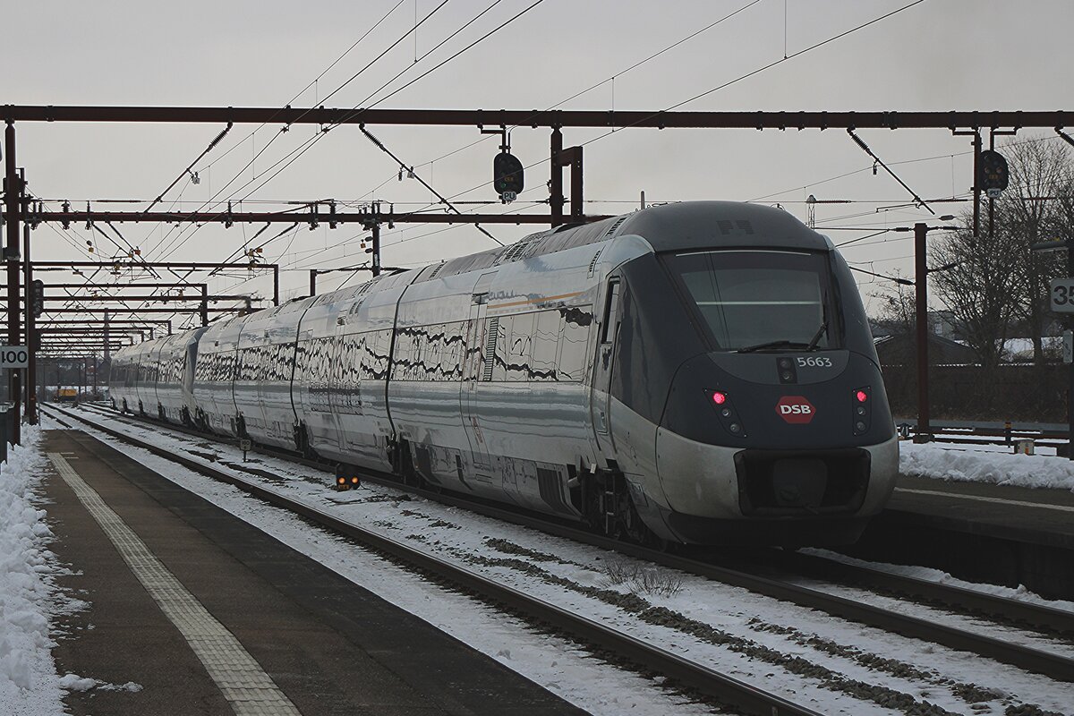 DSB 5663 verlasst Odense als RB nach Fredericia am Nachmittag von 16 Februari 2026. Die 83 Triebzüge hätten vor etwa 20 Jahre der ganze Dänischen IC-Verkehr modernisieren sollen, sind jedoch der grossthe Flopp der DSB je geworden und einige sind schon verschrottet, andere nach Rumänien verkauft worden und die restlige Züge werden in Regionaldiernste eingesetzt. Leon Schrijvers