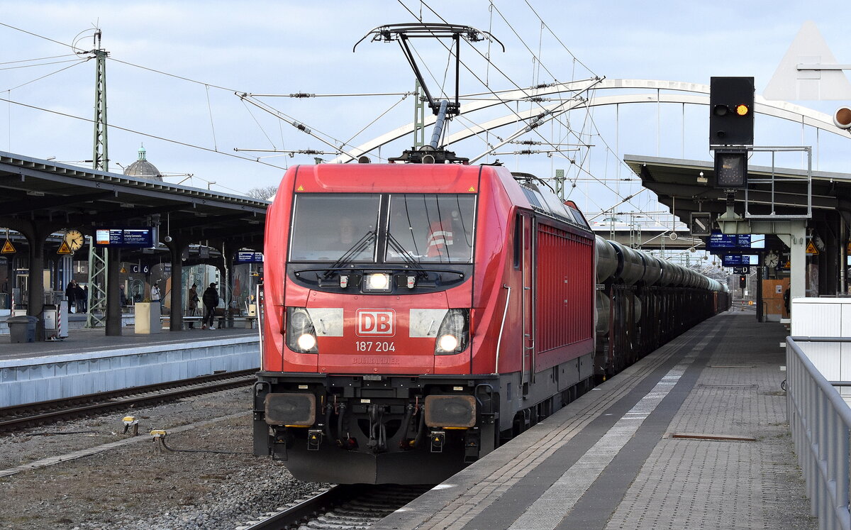 DB Cargo AG, Mainz [D] mit ihrer "187 136" [NVR-Nummer: 91 80 6187 136-7 D-DB] auf Testfahrt am 24.02.26 Höhe Bahnhof Dessau Hbf.
