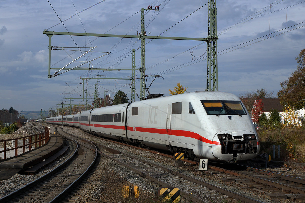 DB: Durch den Ausbau des Bahnhofs Haltingen auf vier Geleise bleibt kein Stein mehr auf dem andern. Das historische Bahnhofsgebäude, der alte Güterschuppen, die Brücken sowie die Dikrektverbindung zum Güterbahnhof fallen dem Umbau zum Opfer. Diverse Änderungen gibt es in Zukunft auch bei den Rollmaterialeinsätzen. Die Züge Basel-HB - Hamburg mit BR 101 und moderisierten Bpm 51-Wagen fallen weg und auch die "fotogenen N-Wagen-Züge" mit BR 111 sollen durch modernere Kompositionen ersetzt werden. Eventuell fahren auch schon bald die neuen ICE IV anstelle von den alten ICE I in die Schweiz. Die Bildserie vom 9. September 2016 dokumentiert noch einmal den Ist-Zustand, bevor die Bagger auffahren werden.