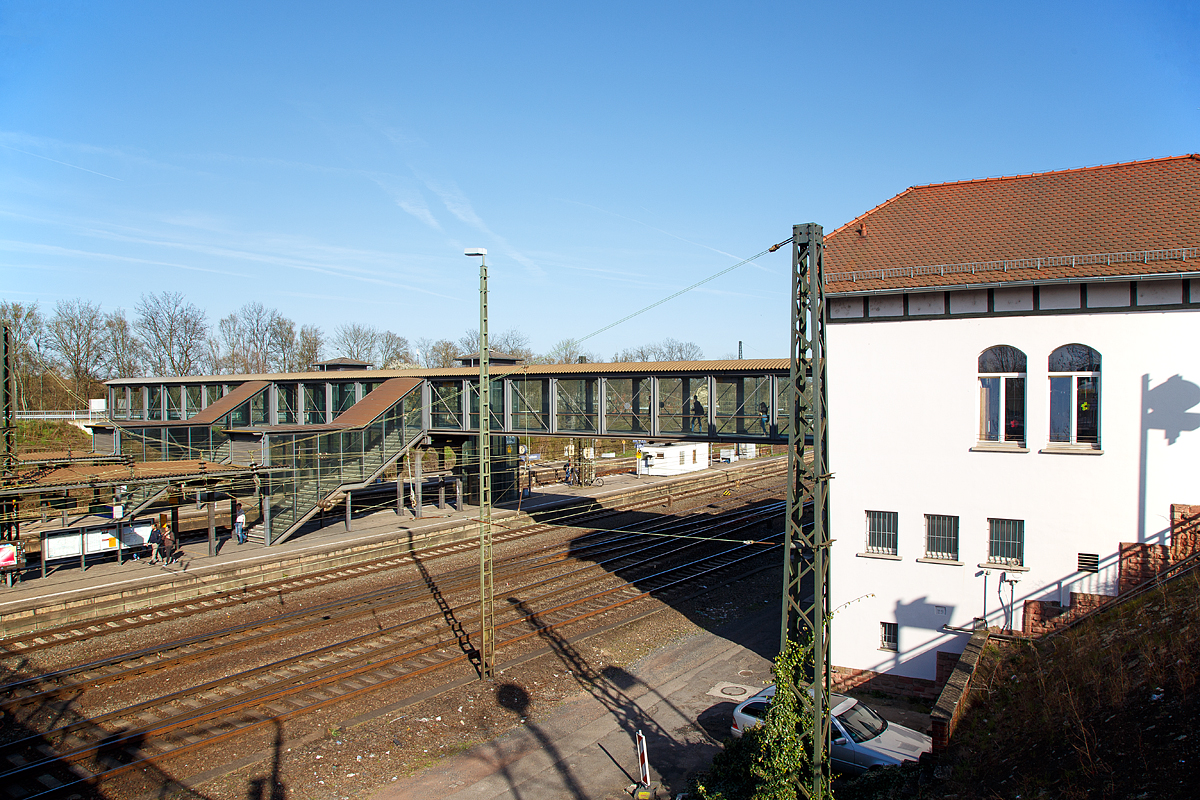 Das Empfangsgebäude vom Bahnhof Mainz-Bischofsheim am 08.04.2018.