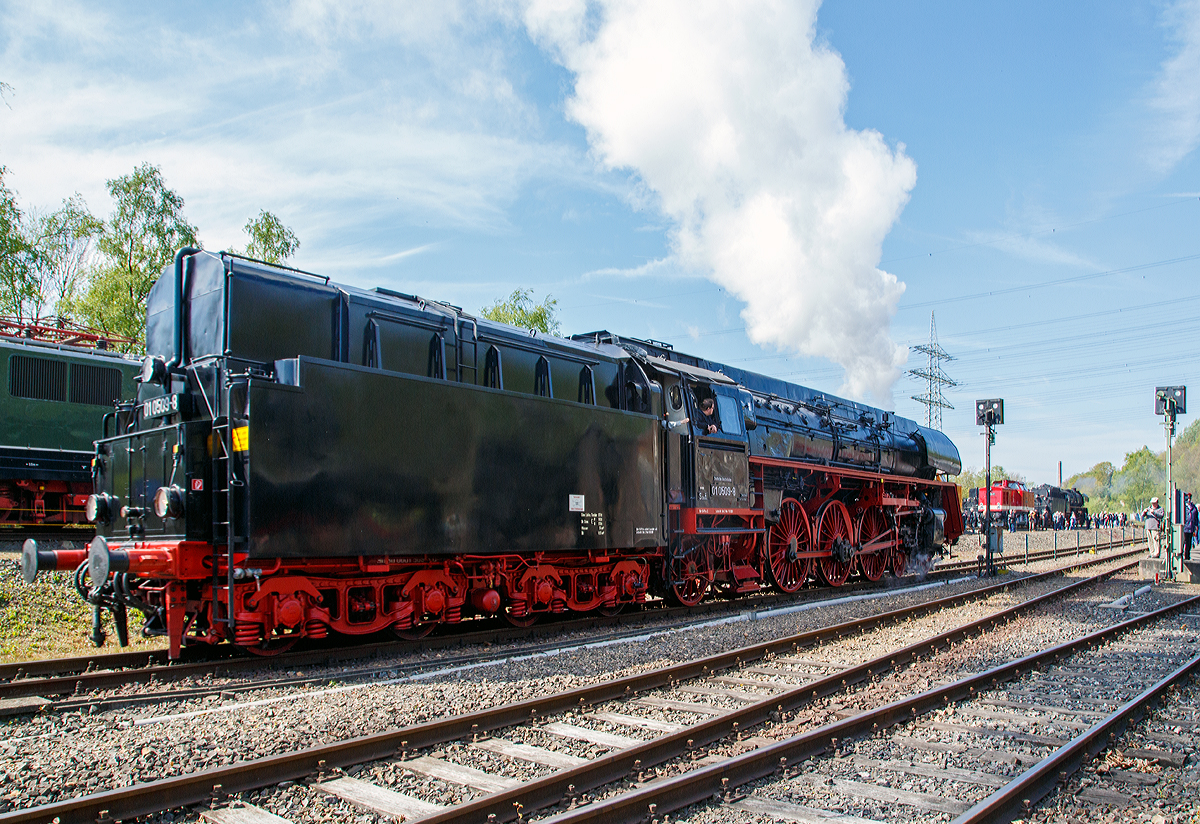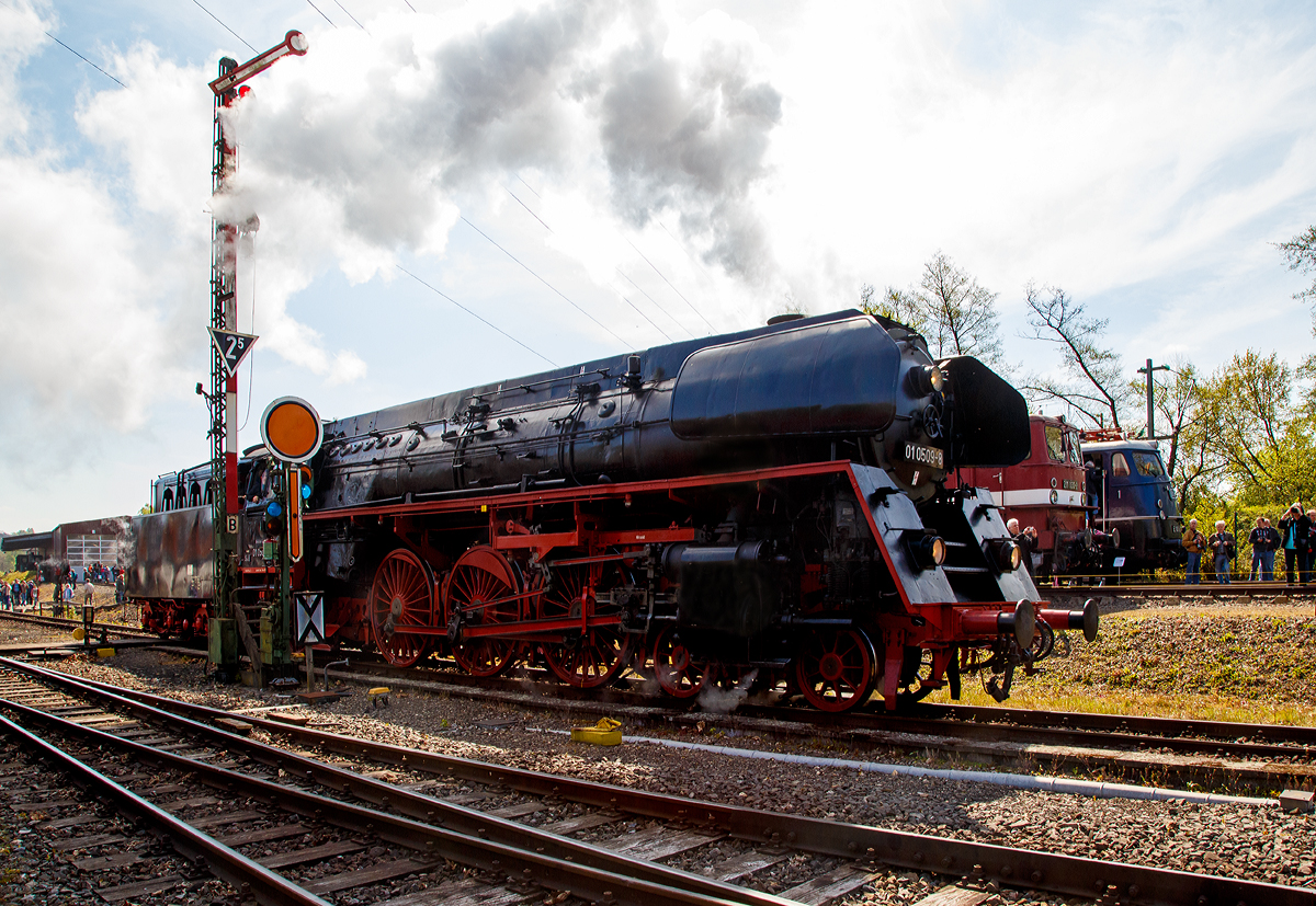 Die ölhauptgefeuerte Reko-Schnellzuglok 01 0509-8 (90 80 0001 509-3 D-PRESS) der PRESS Schnellzug-Dampflokomotive - Eisenbahn-Bau- und Betriebsgesellschaft Pressnitztalbahn mbH, ex UEF 01 509, ex DR 01 0509-8, ex DR 01 143, am 30.04.2017 im Eisenbahnmuseum Bochum-Dahlhausen.