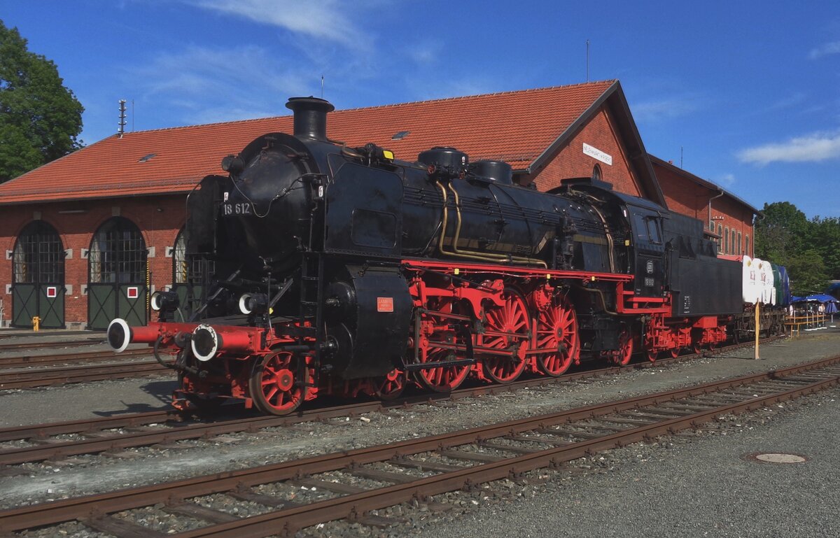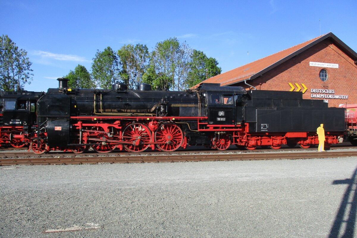 Nür selten komt 18 612 aus der Lokschuppen vons DDM in Neuenmarkt-Wirsberg, aber am 20 Mai 2018 war es so weit: Anlass für dieser Rarität war der 100. Geburtstag der Bayerische Reine S 3/6.