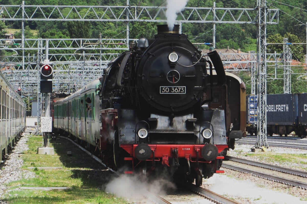 Grosser Bahnhof Wohlen: Die Ankunft des Dampfzuges mit drei Dampflokomotiven vermochte eine sehr grosse interessierte Zuschauermenge zu mobilisieren. Am Abend des 7.3.2015 setzten die 50 3673 und die 01 202 mit dem Rest des Zuges alleine fort in Richtung Olten. Die Aufnahme ist im letzten Abendlicht bei Hendschiken entstanden.