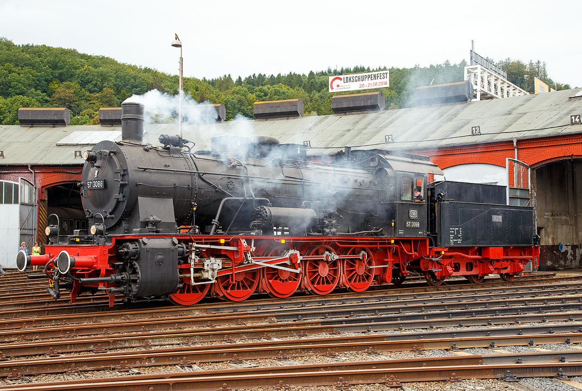 Die preußische G10 Schlepptender-Güterzuglokomotive 57 3088 (ex G10 6011 Halle, ex DB 057 088-7) am 26.08.2017 beim Lokschuppenfest im Südwestfälische Eisenbahnmuseum in Siegen.