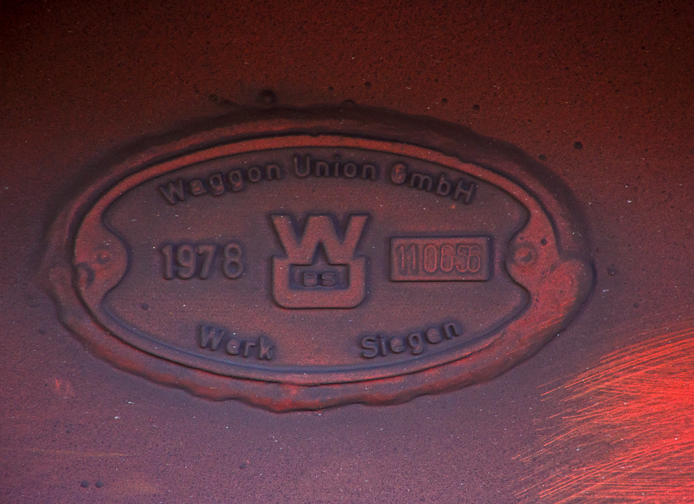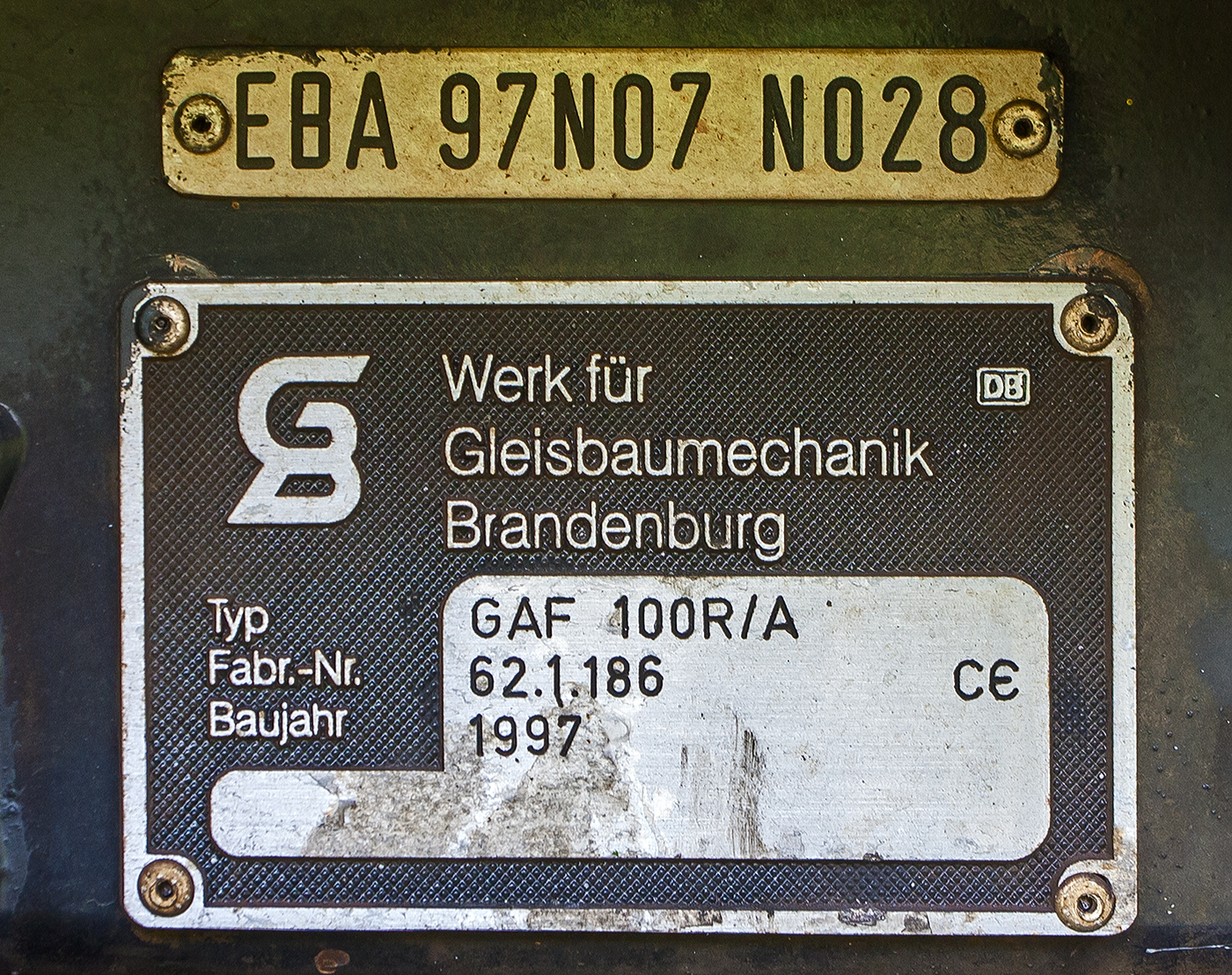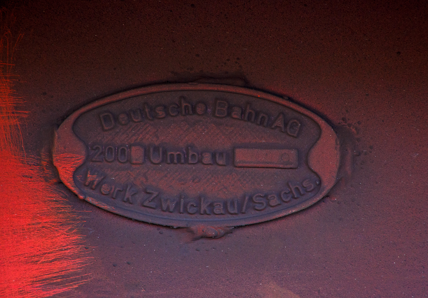 Fabrikschild der normalspurigen LKM Industrie-Diesellok vom Typ LKM V10B vom Eisenbahn- und Heimatmuseum Erkrath-Hochdahl e.V. am 26 Mai 2024 beim Lokschuppen Hochdahl.