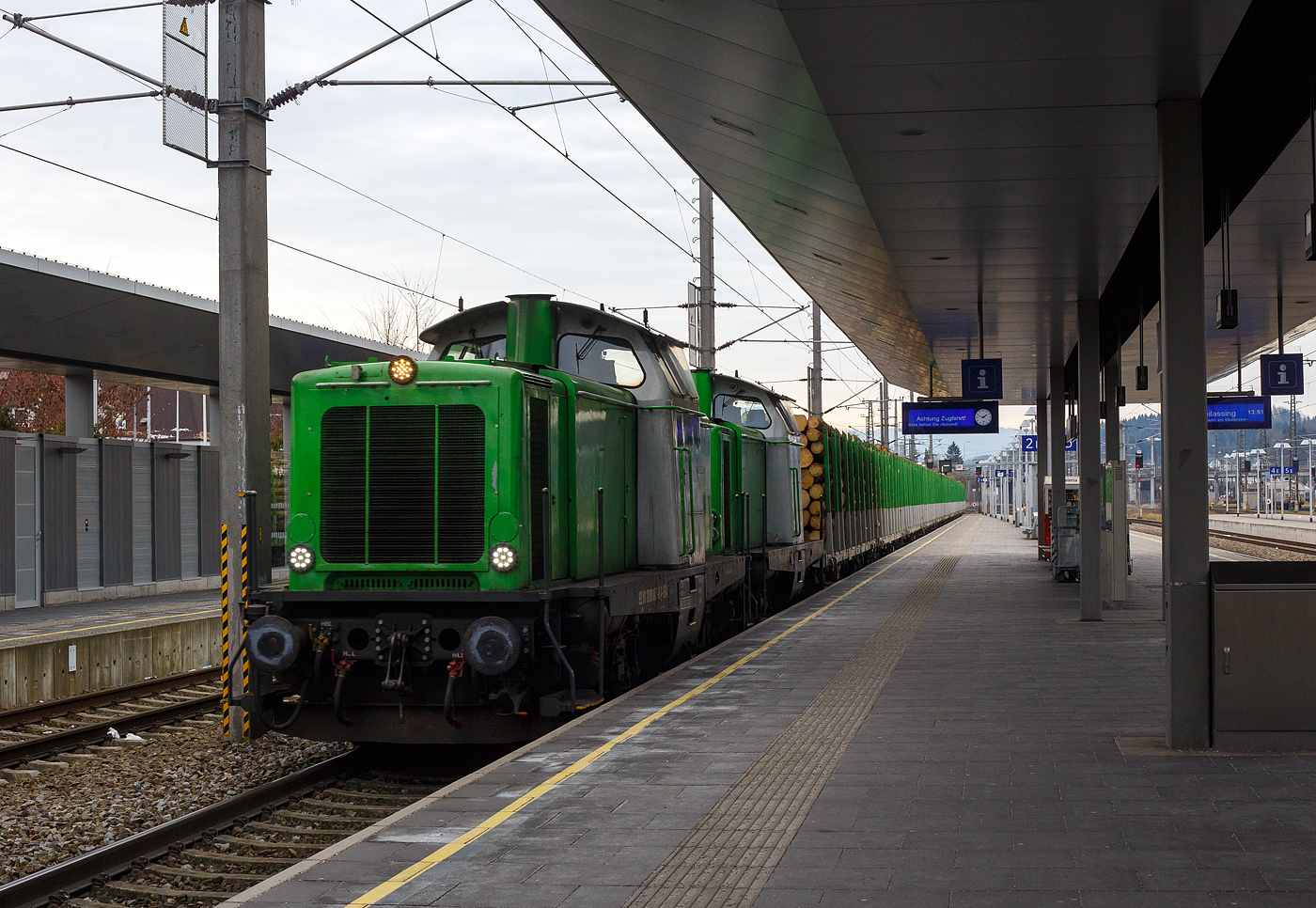 Nach das aussteigen der Fahrgasten verlasst am 30 Dezember 2024 V 100 1019 der UEF der Bahnhof von Seebrugg um ins Abstellbereich zu geraten, wo die Zug für den 2.Sonderfahrt vorberitet wird -und von offenbarer Stelle aus fotografisch 'gerettet' wird.