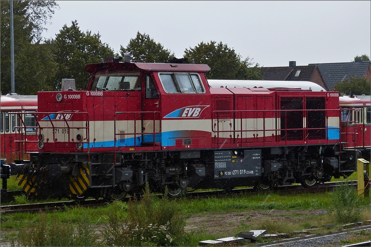 Vossloh G 1000 BB Diesellok; 92 80 1271 019-2 D EVB; Bj 2005; Bau Nr. 5001565;Bauart B‘B‘-dh; Spurweite 1435 mm; aufgenommen in der Abstellung von Bremervörde vom Bahnsteig aus. 17.09.2019 Hans und Jeanny De Rond