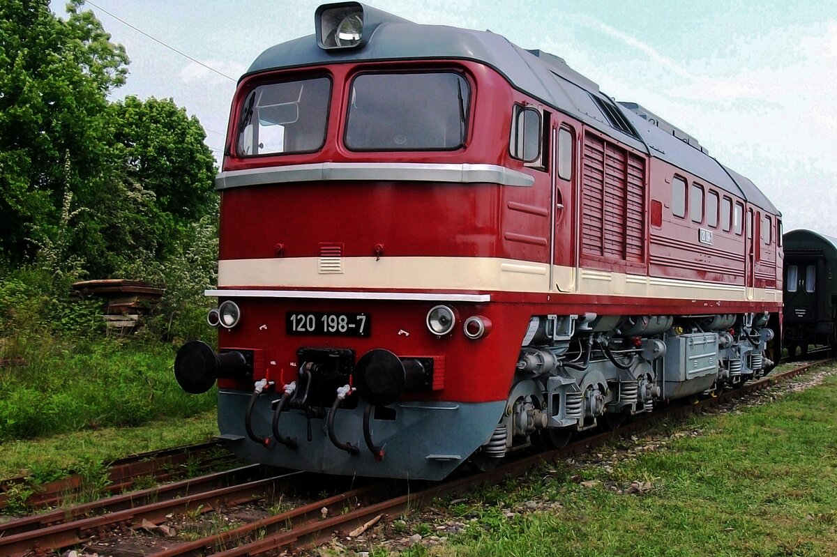 EBS V 200 507 ist drie Jahre nach den Erstauftritt in Benesov u Prahy wieder dort zu Gast und schiebt am 27 September 2025 eine der 25 Sonderzüge des Tages aus Benesov u Prahy während das Bahnfest STEAM56.