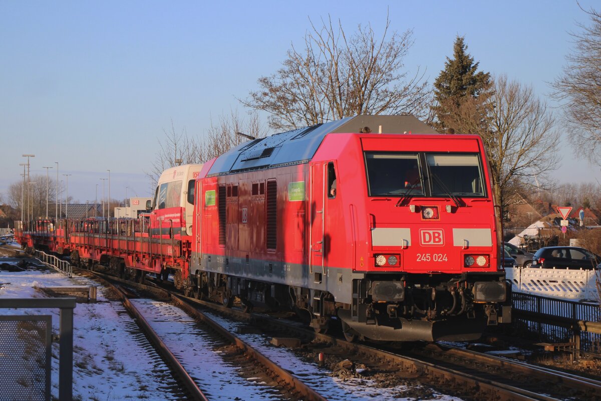 245 020 war am 5. Dezember 2020 mit insgesamt 15 Doppelstockwagen und der schiebenden 143 064-4 auf dem Weg von Frankfurt-Griesheim nach Limburg(Lahn) und wurde dabei zwischen den Orten Oberbrechen und Niederbrechen fotografiert. Grund für die Überführung der Fahrt war die Streckensperrung zwischen Idstein(Taunus) und Eppstein aufgrund einer maroden Straßenbrücke in Niedernhausen, die akut einsturzgefährdet war. Mit einmaliger Erlaubnis durfte die Überführung stattfinden, da zwischen Idstein und Limburg lediglich zwei Garnituren eingesperrt waren, die zum Aufrecht erhalten des Betriebs langfristig gesehen nicht gereicht hätten. So kam es zu dem ungewohnten Bild, dass sich eine 245 auf die Main-Lahn-Bahn verirrte und eine große Menge an Doppelstockwagen mit sich führte. In Niedernhausen war nämlich der Strom abgestellt, weshalb man eine Diesellok benötigte.