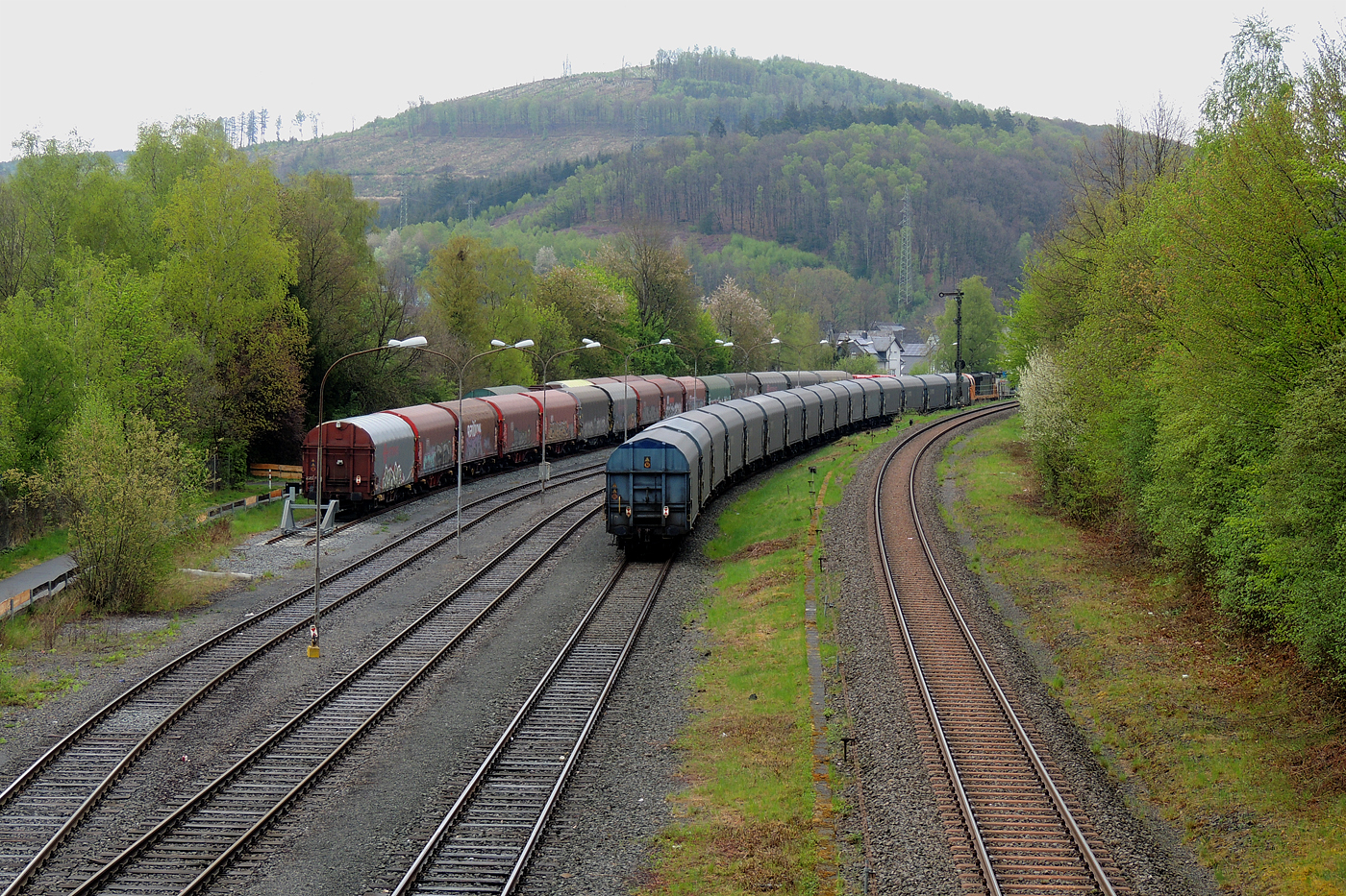Den Zug übernimmt gleich die KSW 44, die diesen dann Teil weiter zu den Schäfer Werke KG am Pfannenberg in Neunkirchen-Salchendorf, da wegen den Achslasten dafür besser geeignet ist. Die KSW 43 und die KSW 47 fahren später gemeinsam als Lokzug zurück in Richtung Betzdorf/Sieg. Armin Schwarz