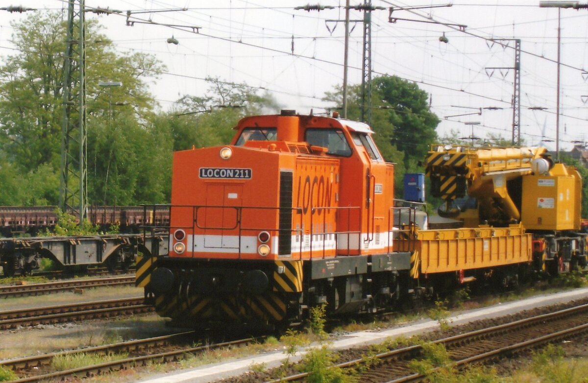Am 8 Mai 2008 treft LOCON 211 mit ein kurzer Gleisbauzug in Emmerich ein.