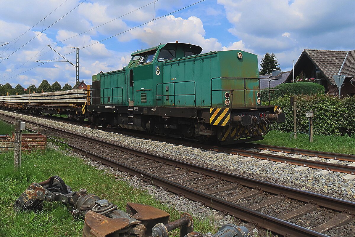 Links im Vordergrund die V 150.04 (92 80 1293 510-4 D-SGL) der SGL - Schienen Güter Logistik GmbH, ex DB 710 966, ex DR110 966-9.