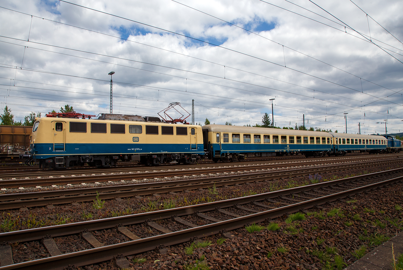 Die E 40 wurde 1963 von Henschel in Kassel unter der Fabriknummer 30656 gebaut, der elektrische Teil ist von den Siemens-Schuckert-Werke (SSW), und als E 40 423 an die Deutsche Bundesbahn geliefert. Zum 01.01.1968 erfolgte die Umzeichnung in DB 140 423-5. Aus den aktiven Dienst schied sie 2011 aus und ging ins DB Museum Koblenz-Lützel. Dort wird die Lok in der ehemaligen Farbgebung türkis/beige erhalten und wird als Zugfahrzeug für Überführungen und Sonderzüge genutzt.