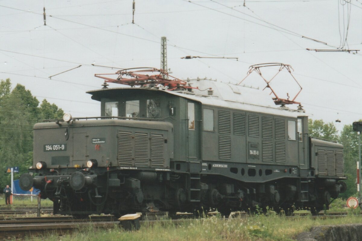 Scanbild von 194 051 beim Solofahrt durch das Gelände in Darmstadt-Kranichstein während die Bahnwelt-Tage des ansassigen Eisenbahnmuseums, 29 Mai 2007.