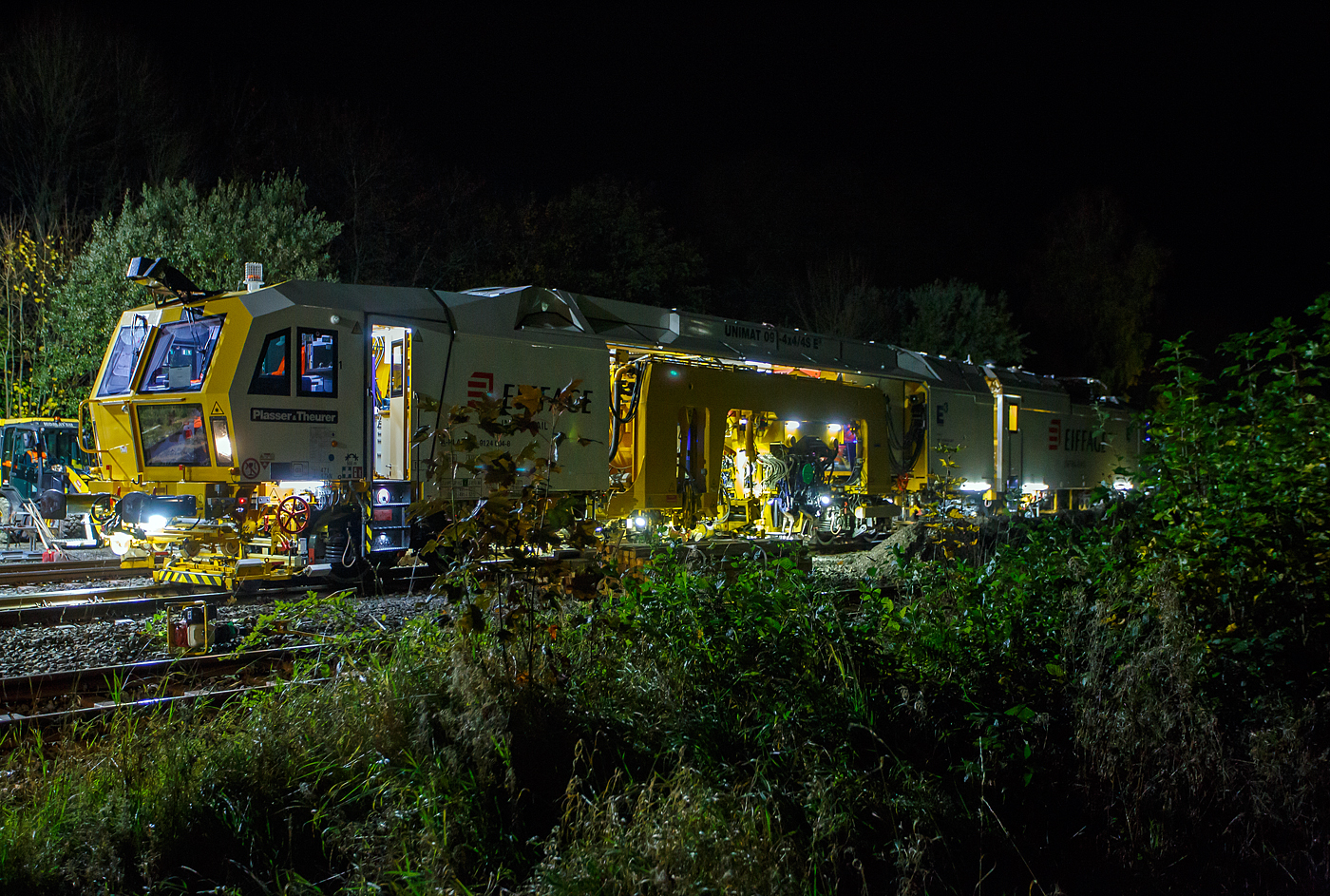 Baustelle Bahnhof Herdorf am 12 Oktober 2025, nun werden die Weichen 25 und 26 eingeschottert.