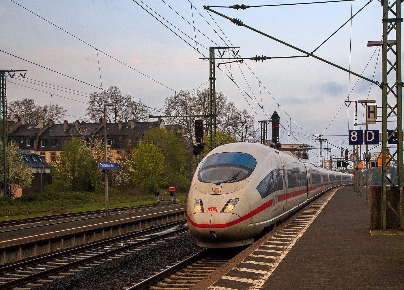 Der ICE 3 (BR 403) - Tz 352 "Mönchengladbach" rauscht am 14.07.2012 in Richtung Frankfurt am Main, hier aufgenommen von einem Parkplatz an der A3 bei Limburg. Die Schnellfahrstrecke Rhein/Main (KBS 472) verläuft hier viel Kilometer entlang der Autobahn A3.