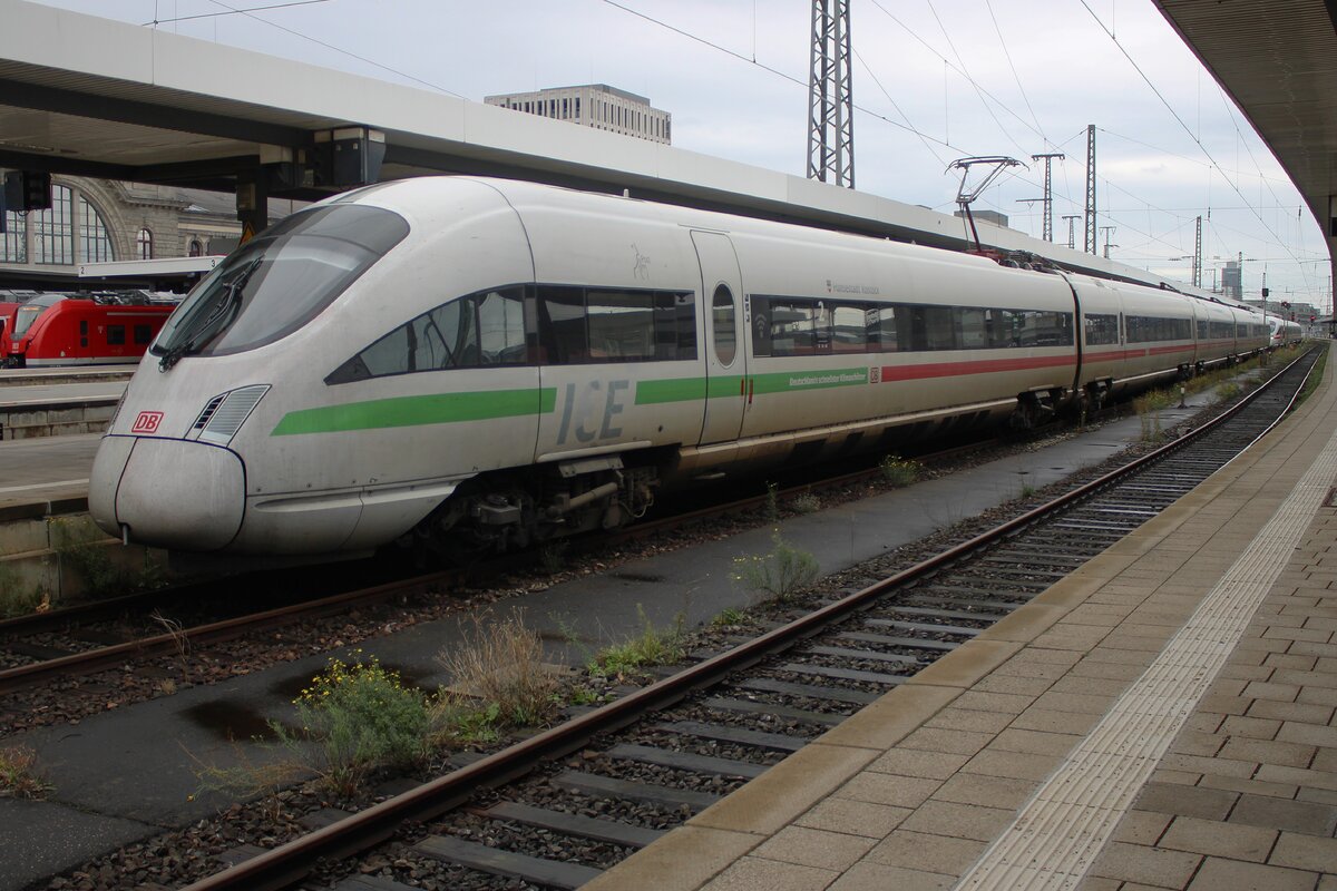 Der Stromrichterwagen der zweiten Klasse (mit 1 Rollstuhlplatz), 93 80 5 411 609-1 D-DB, der Gattung Bpmbz, des 7-teilige ICE T - Tz 1109 „Güstrow“ der DB Fernverkehr AG am 14 Mai 2022 im Bahnhof Lüneburg.