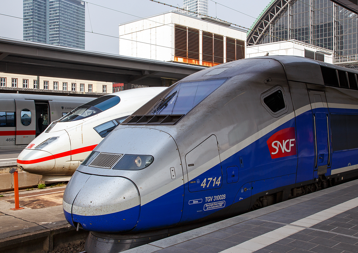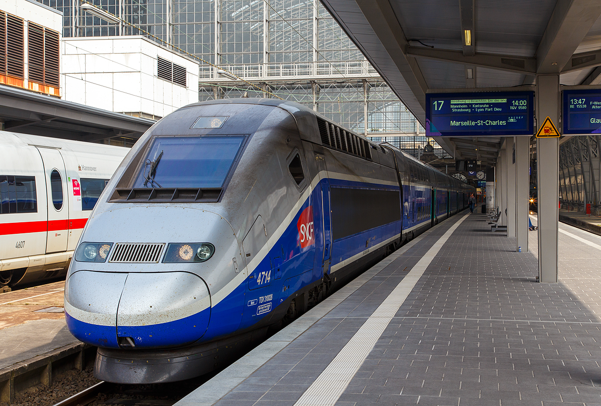 DB/SNCF: TGV 9576 Strassbourg - Paris-Est bei der Einfahrt Karlsruhe Hbf am 29. April 2017.