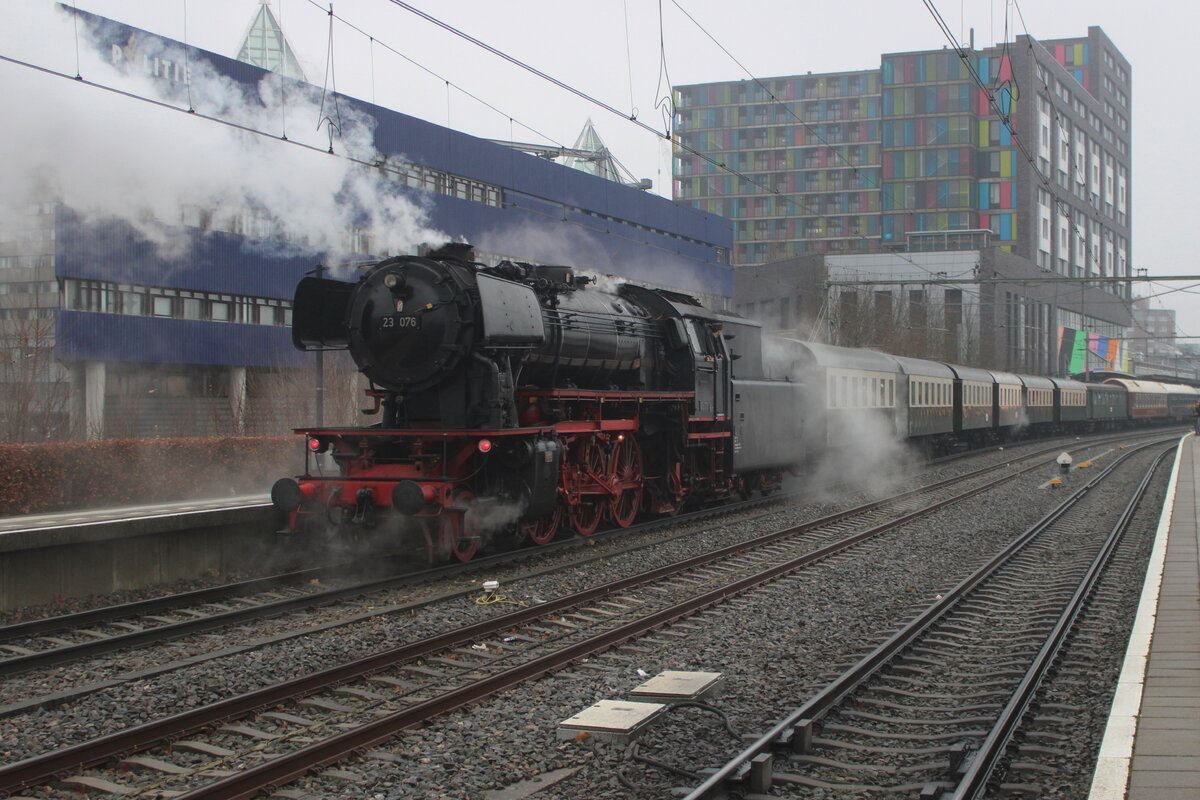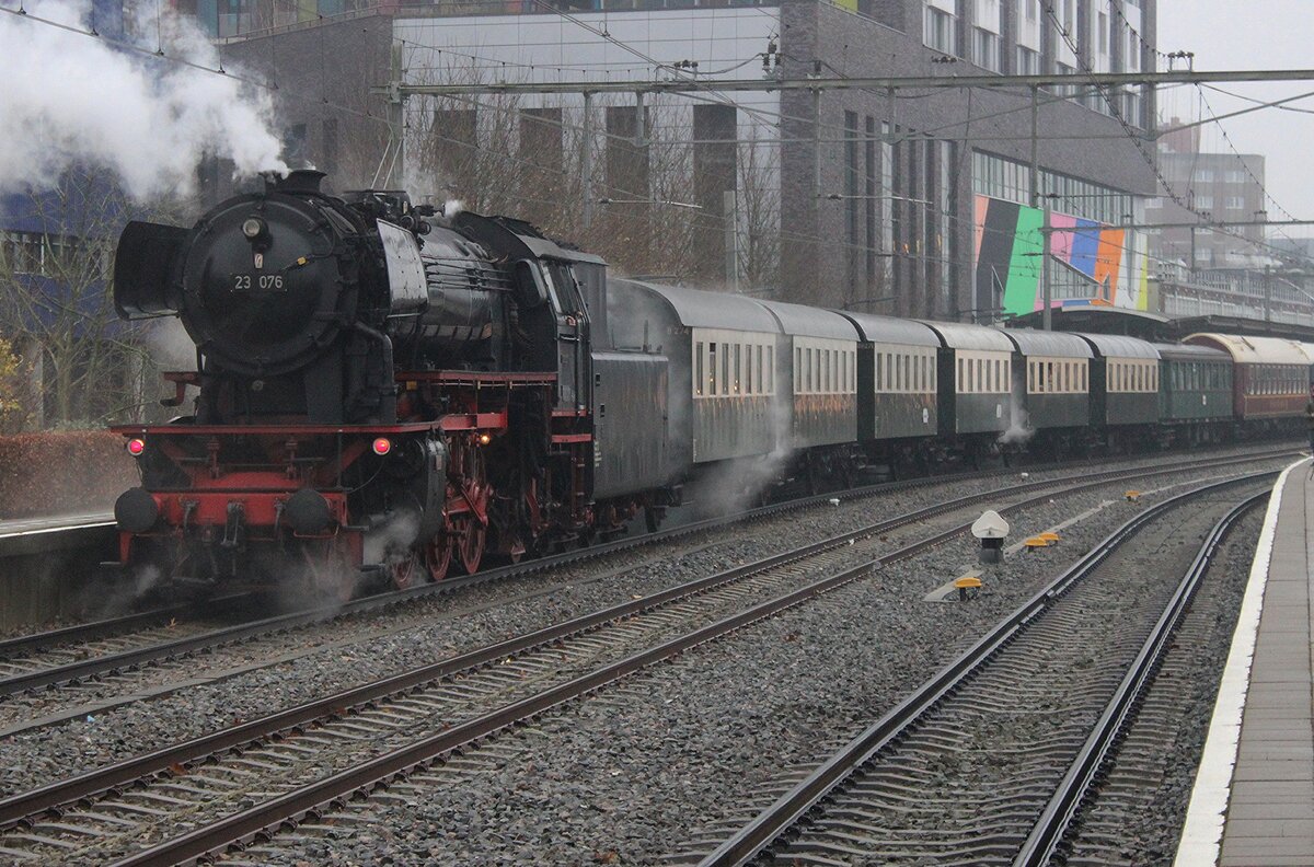 Am 15 Dezember 2024 ist VSM 23 076 mit der Christmas-Express Sonderzug in Nijmegen angekommen und wird innerhalb von zehn Minuten nach Arnhem Centraal zurückfahren.