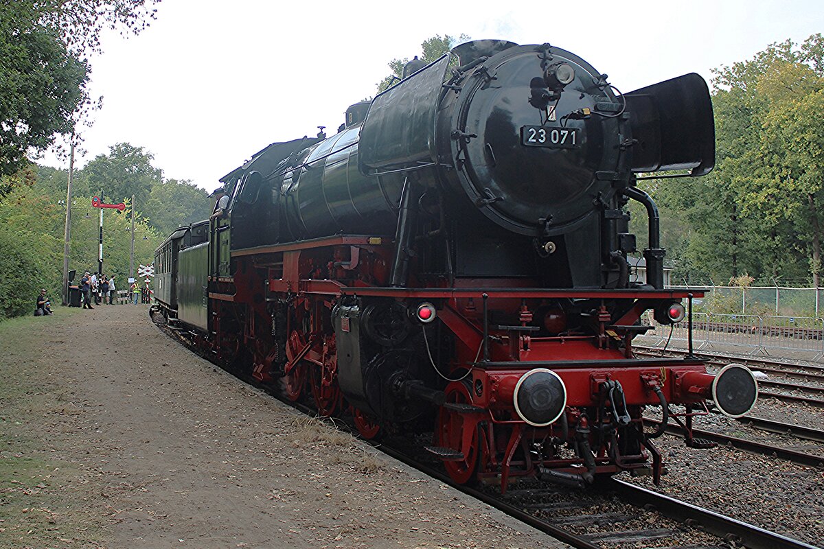 VSM 23 071 treft mit ein Dampfpendelzug aus Beekbergen am 6 September 2025 in LOenen ein.