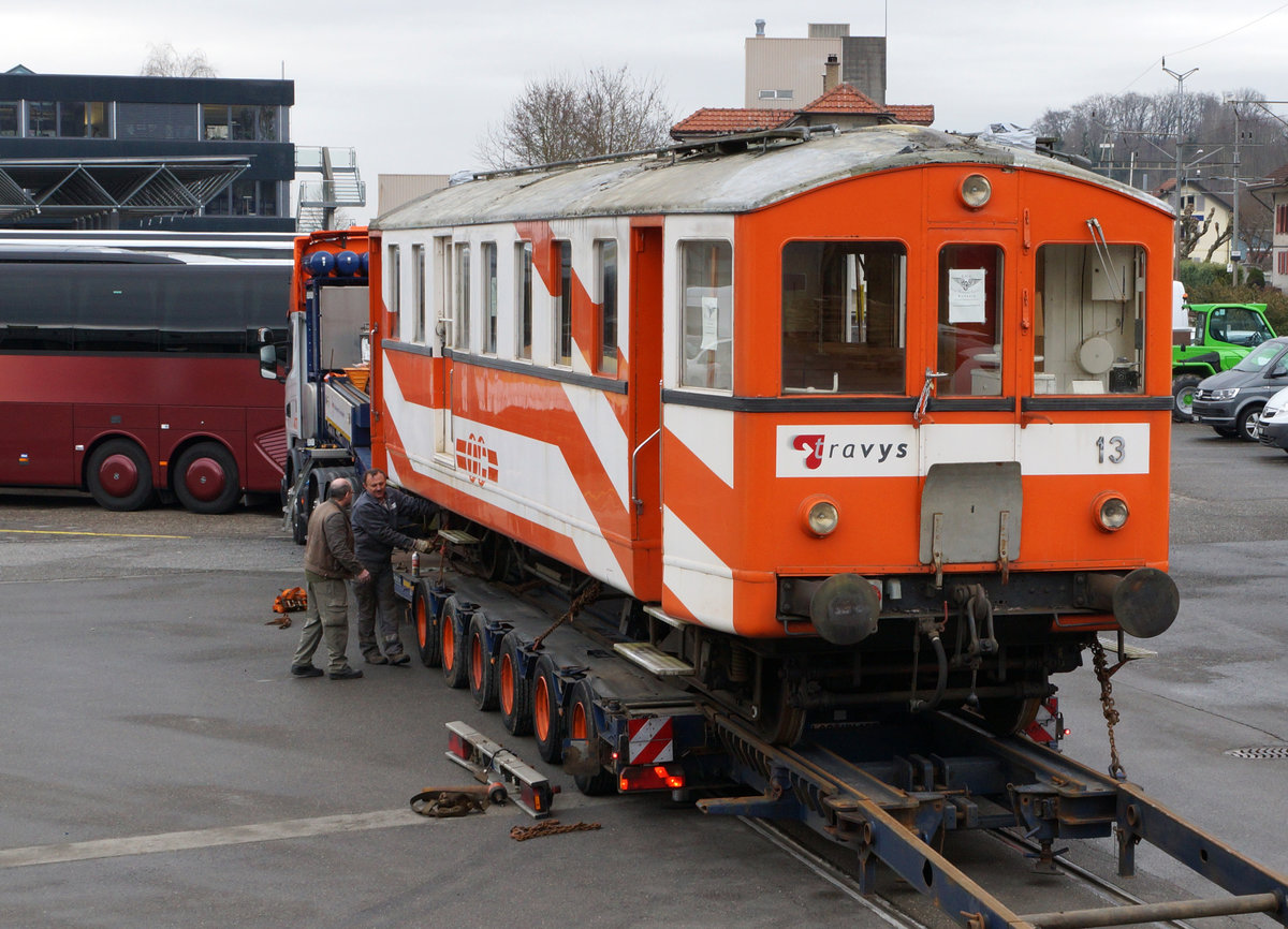 Der OC Triebwagen BDe 4/4 13 mit Baujahr 1920, der viele Jahre auf der westschweizer Bahnlinie zwischen Orbe und Chavornay hin und her pendelte, wird nun von der Museumsbahn Buckower Kleinbahn übernommen. Nach der Ausrangierung bei Travys bereicherte die Nummer 13 einige Jahre die interessante Fahrzeugsammlung des Bahn Museums Kerzers das per 31. März 2017 aufgelöst wird. Am 21. Februar 2017 wurde der OC BDe 4/4 13 in Kallnach auf einen polnischen Lastenzug verladen und für die lange Reise in Richtung Berlin fit gemacht. Unterstützt wurde dieses Projekt durch das SWS Museum Schlieren.