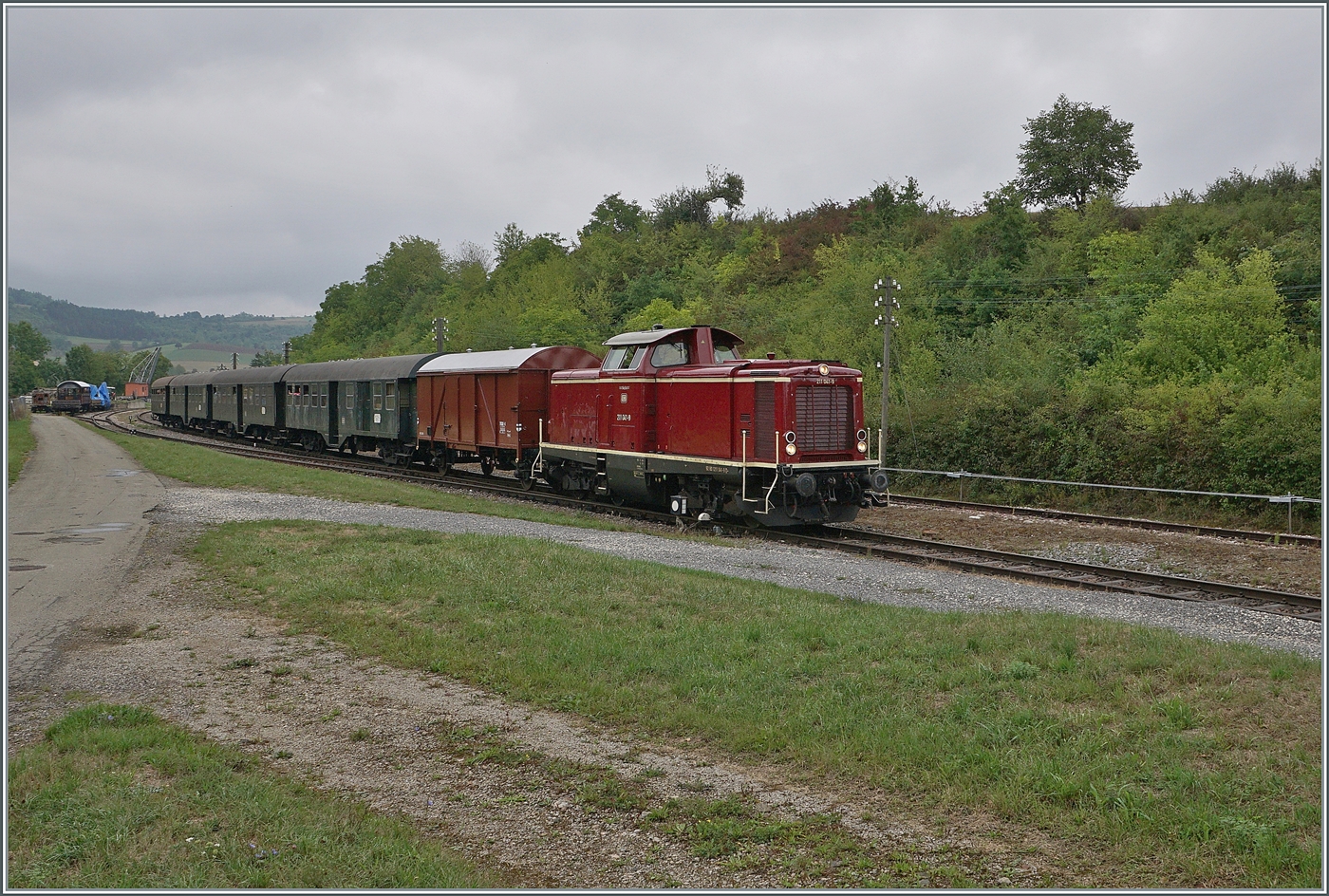 Die Einheits-Güterzugtenderlokomotive 86 333, ex DR 86 1333-3, ex DR 086 333-2, (damals 2013) der WTB - Wutachtalbahn e.V. steht am 24.08.2013 im Dampflokwerk Meiningen (DLW).