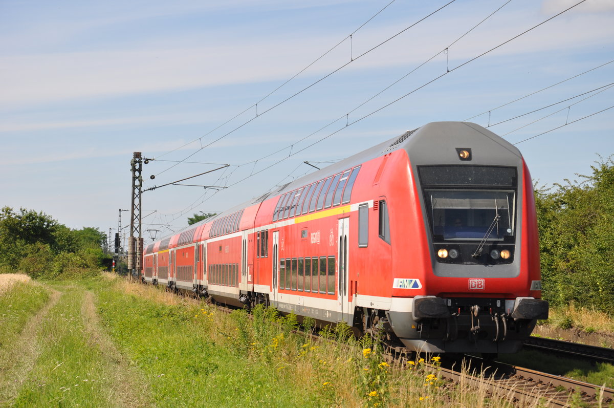 Der Bombardier TWINDEXX Vario Doppelstock-Regionalverkehrstriebzug 446 013 erreicht am 18.05.2018 den Hauptbahnhof Fankfurt am Main.