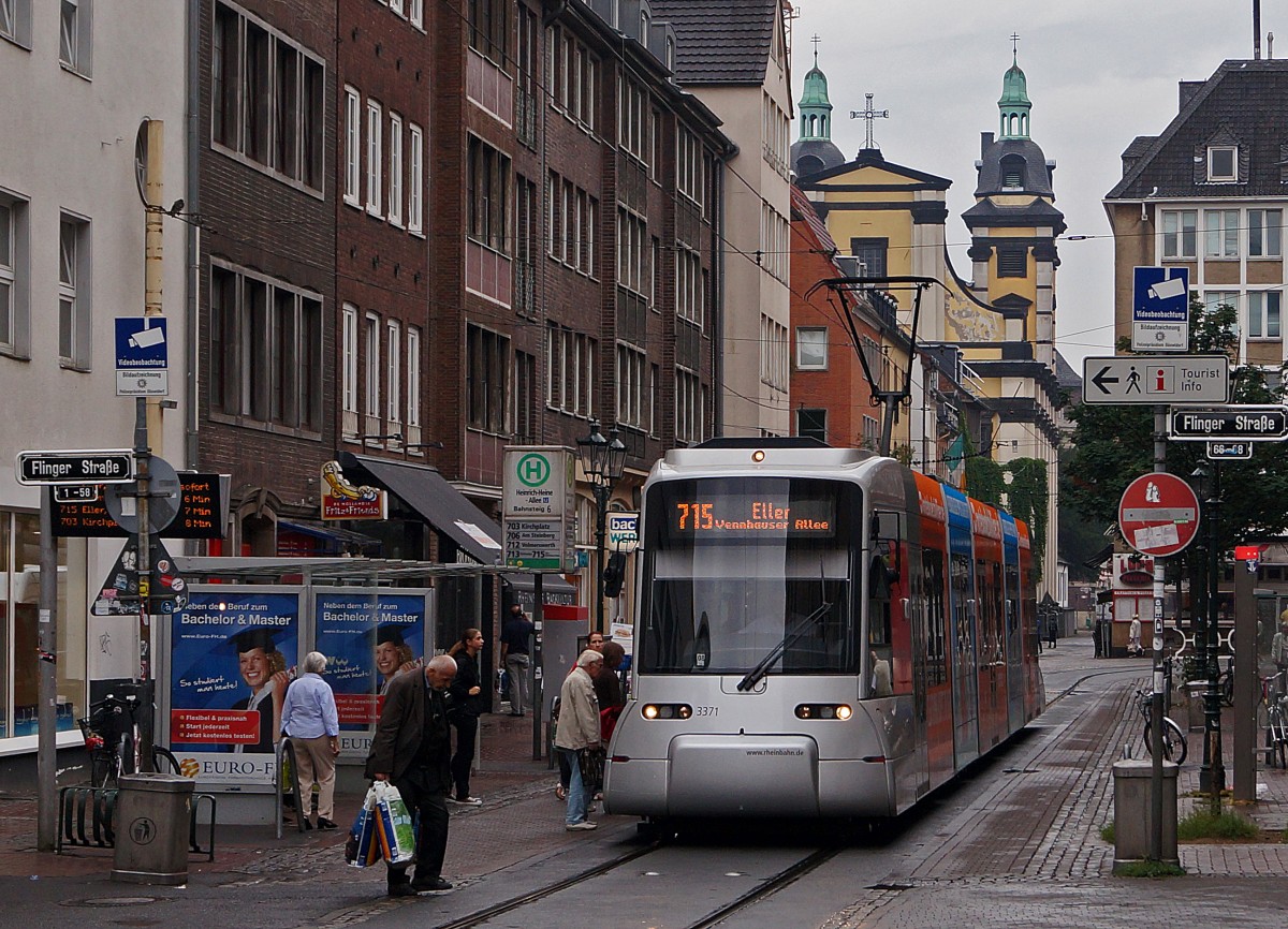 Strassenbahn Düsseldorf: Seit dem 21. Februar 2015 verkehrt die Strassenbahn Düsseldorf nicht mehr auf der Bolker Strasse und Hunsrückenstrasse, wo sie die Altstadt berührte. NF8U 3330 (oder Hamsterbacken genannt) der Linie 712, verewigt am 7. August 2013.