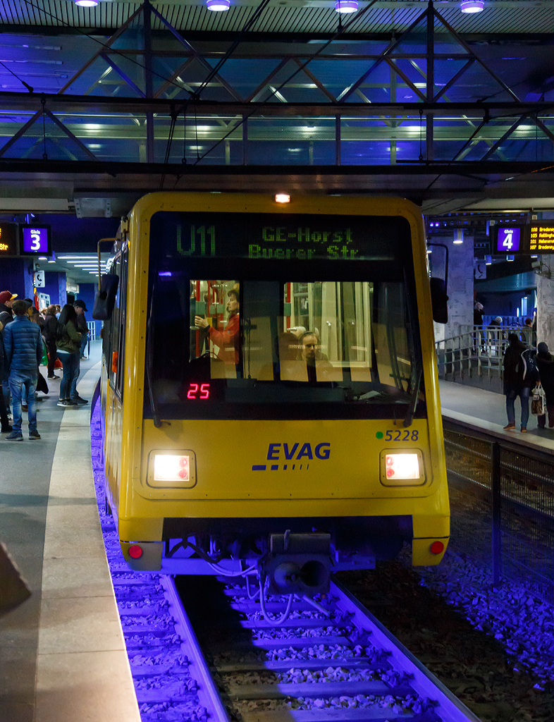 Der EVAG 5122 ein Stadtbahnwagen Typ B erreicht am 08.02.2016 als Linie U 17 den U-Bahnhof Essen Hauptbahnhof. Der Wagen vom Typ B80C wurde 1978 von Duewag gebaut.