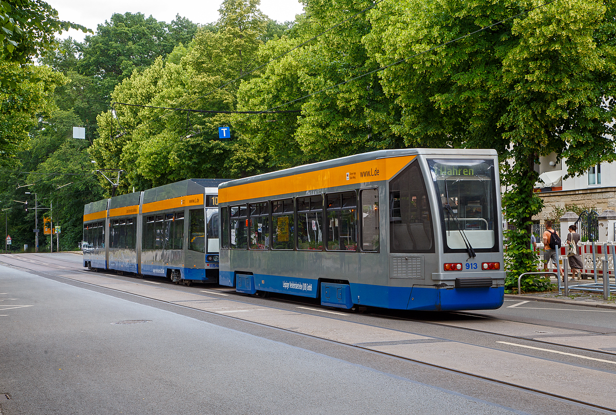 Der modernisierte vierachsige Tatra-Großraumtriebwagen vom Typ T4D-M1 - 33c) der LVB (Leipziger Verkehrsbetriebe) erreicht am 21.05.2016, als Linie 7, bald die Station Leipzig Hauptbahnhof.